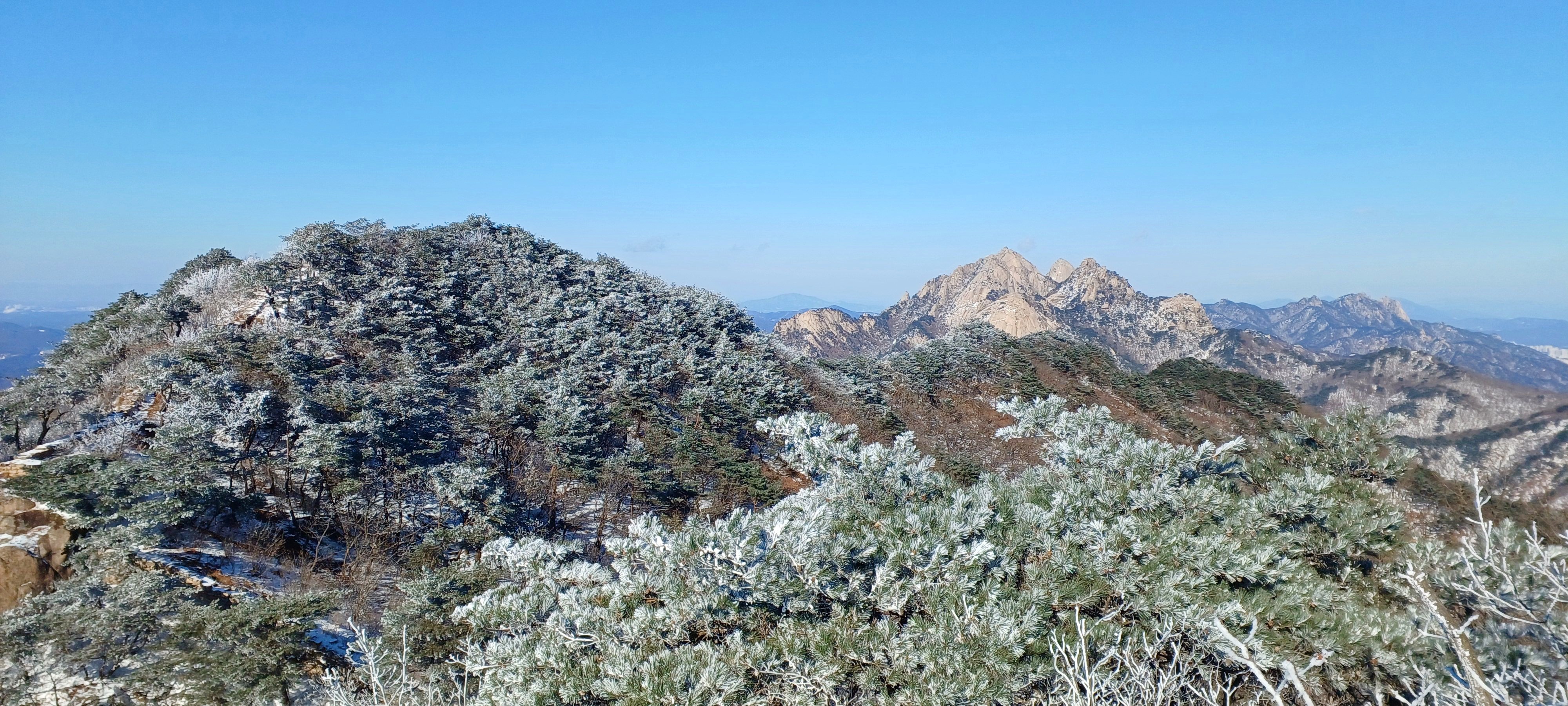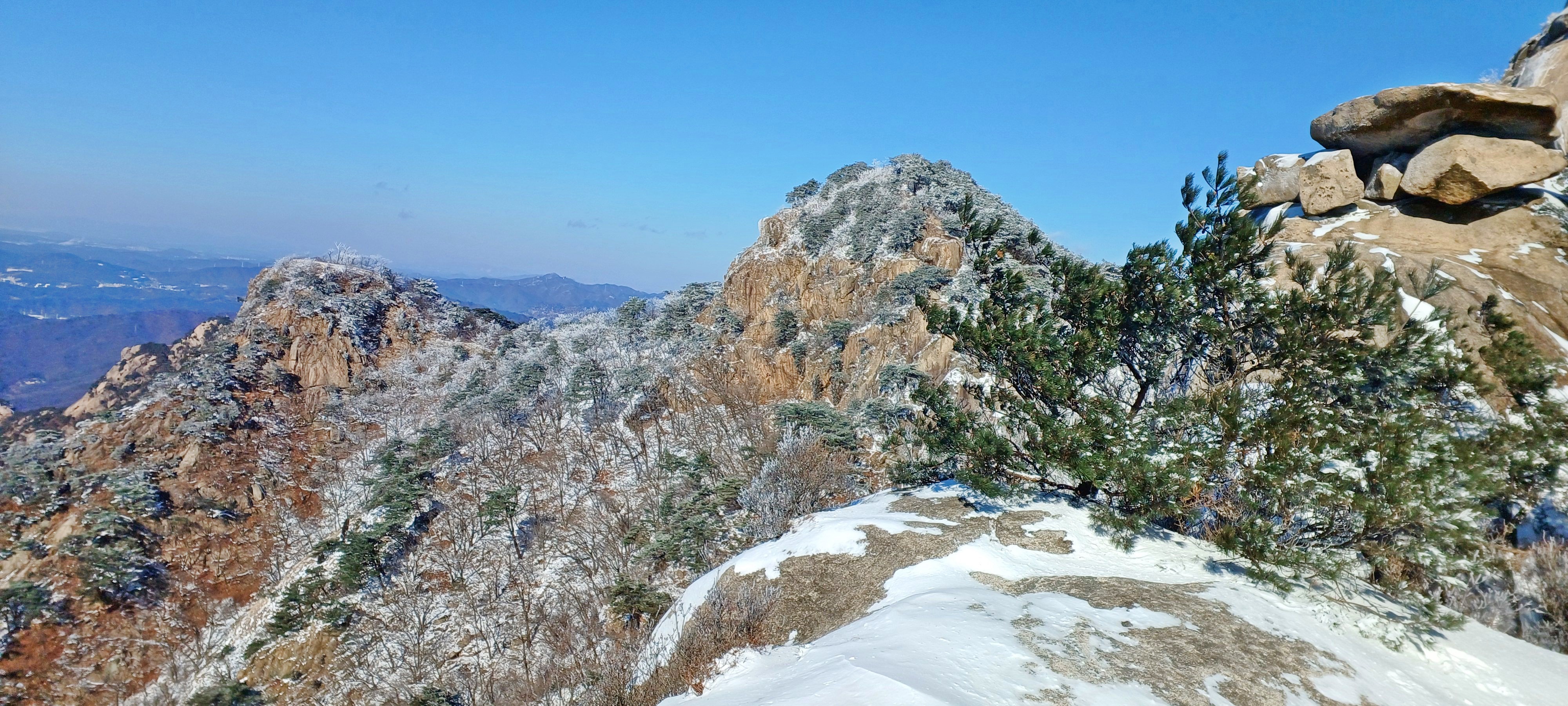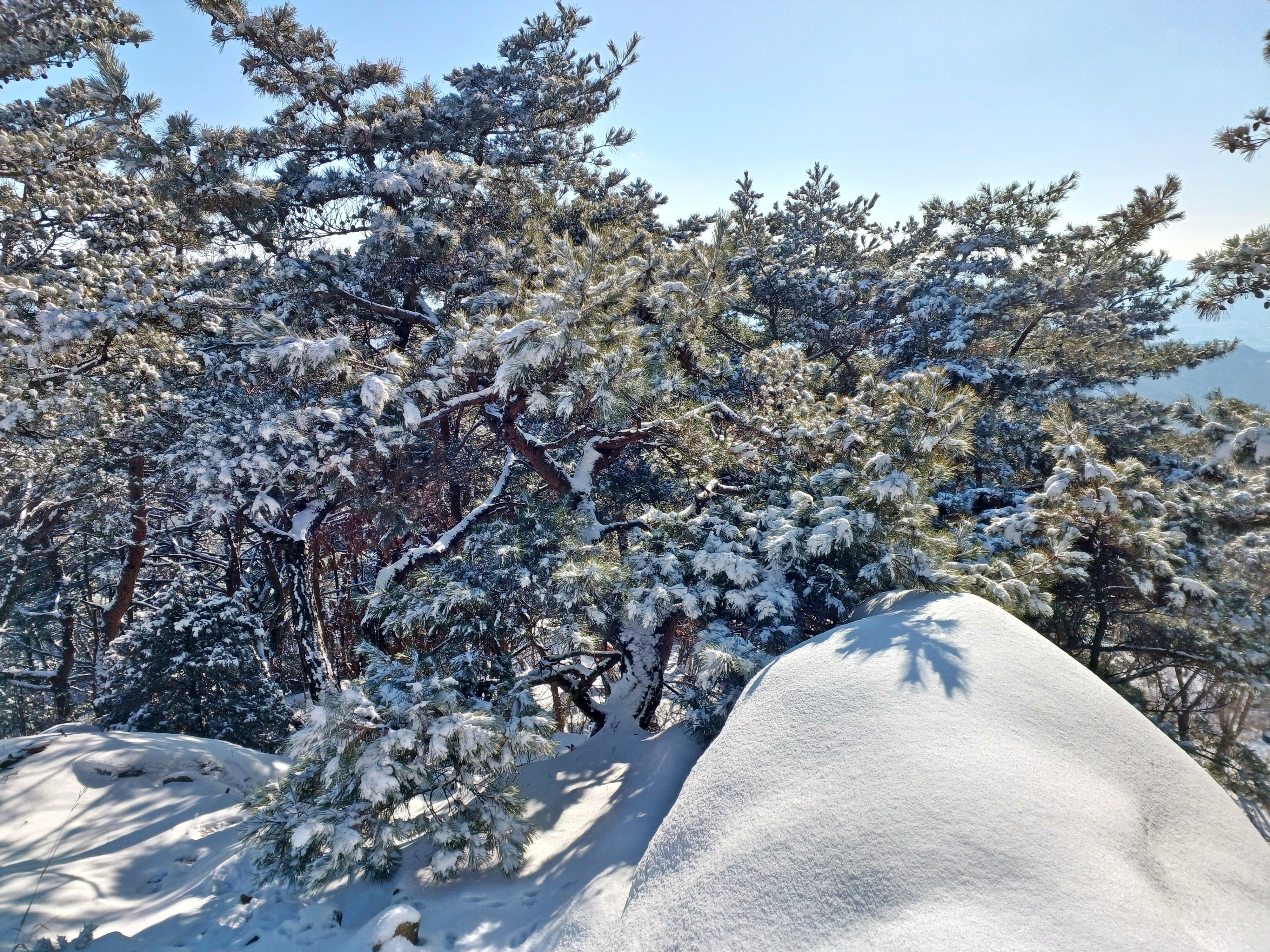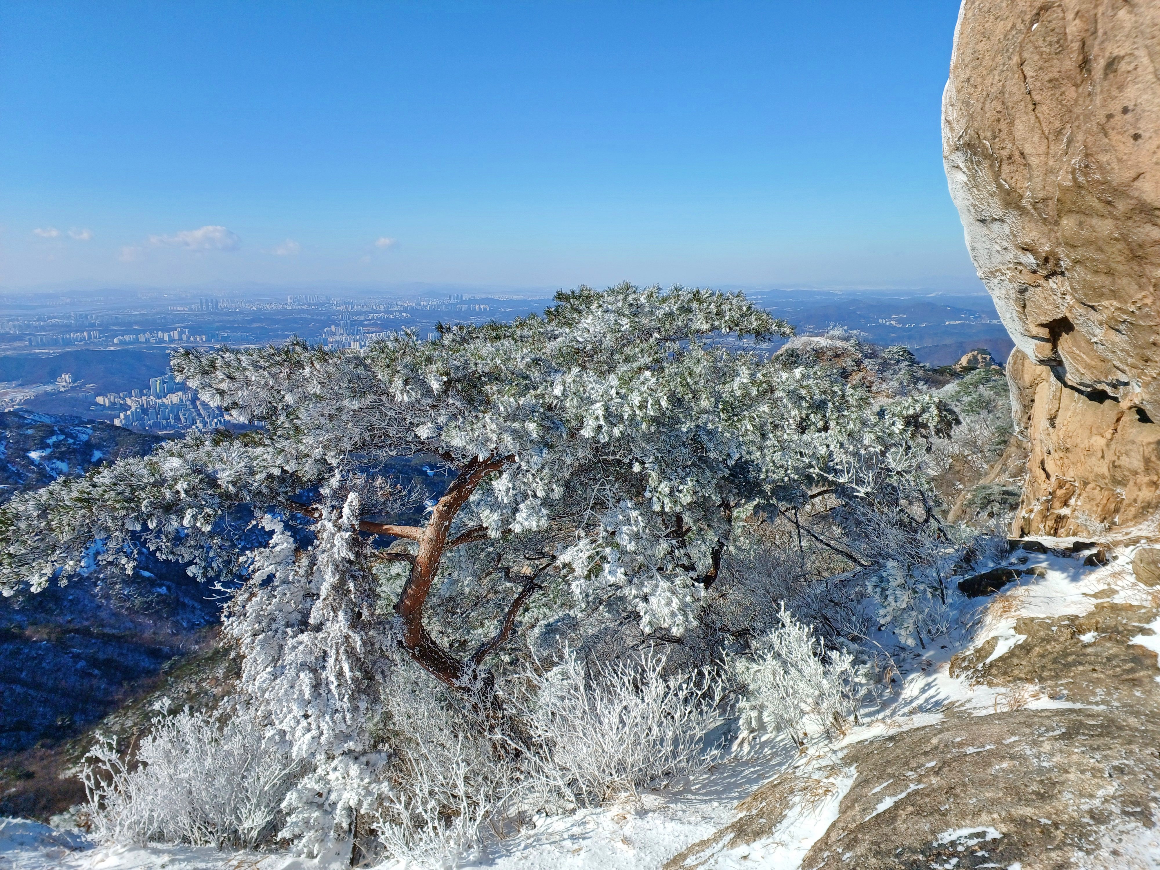 바로 만나는 조망바위에서 소나무에 내려앉은 눈꽃을 담으며..............