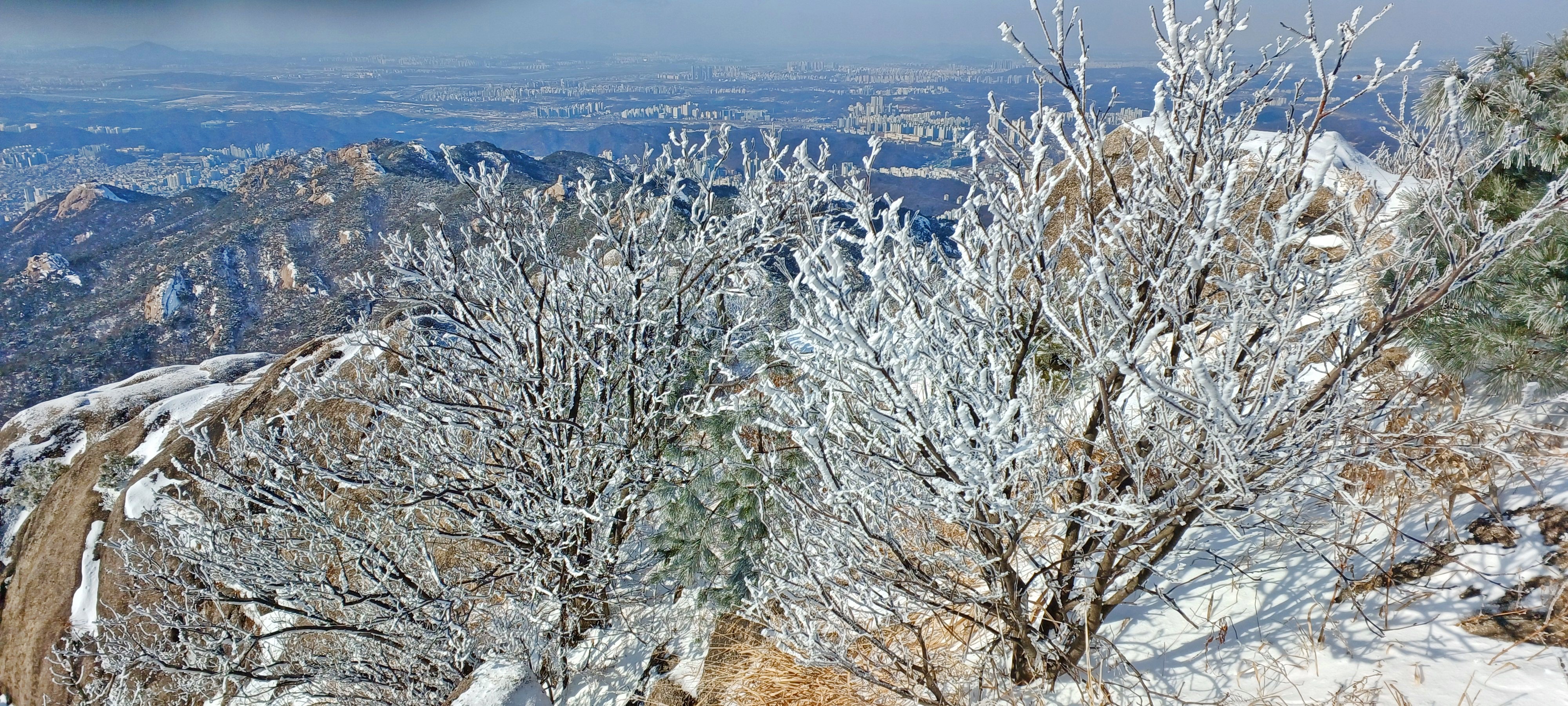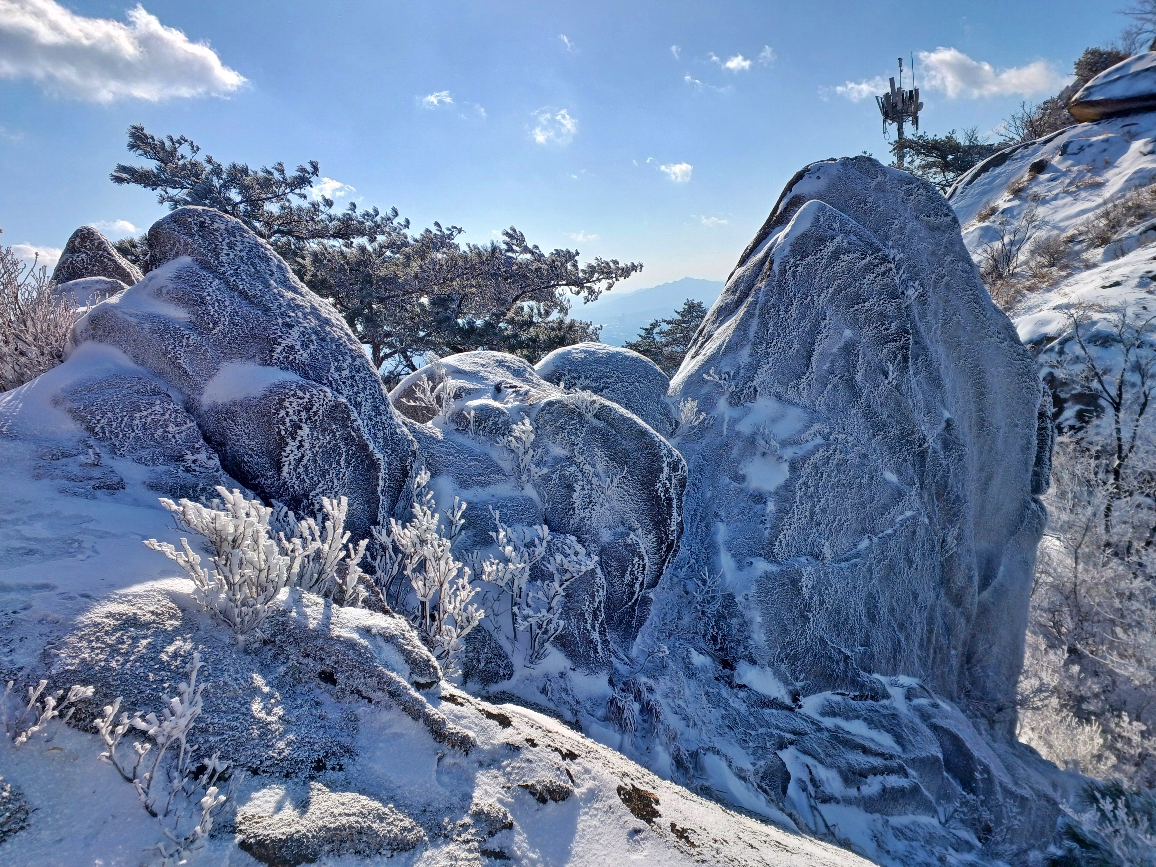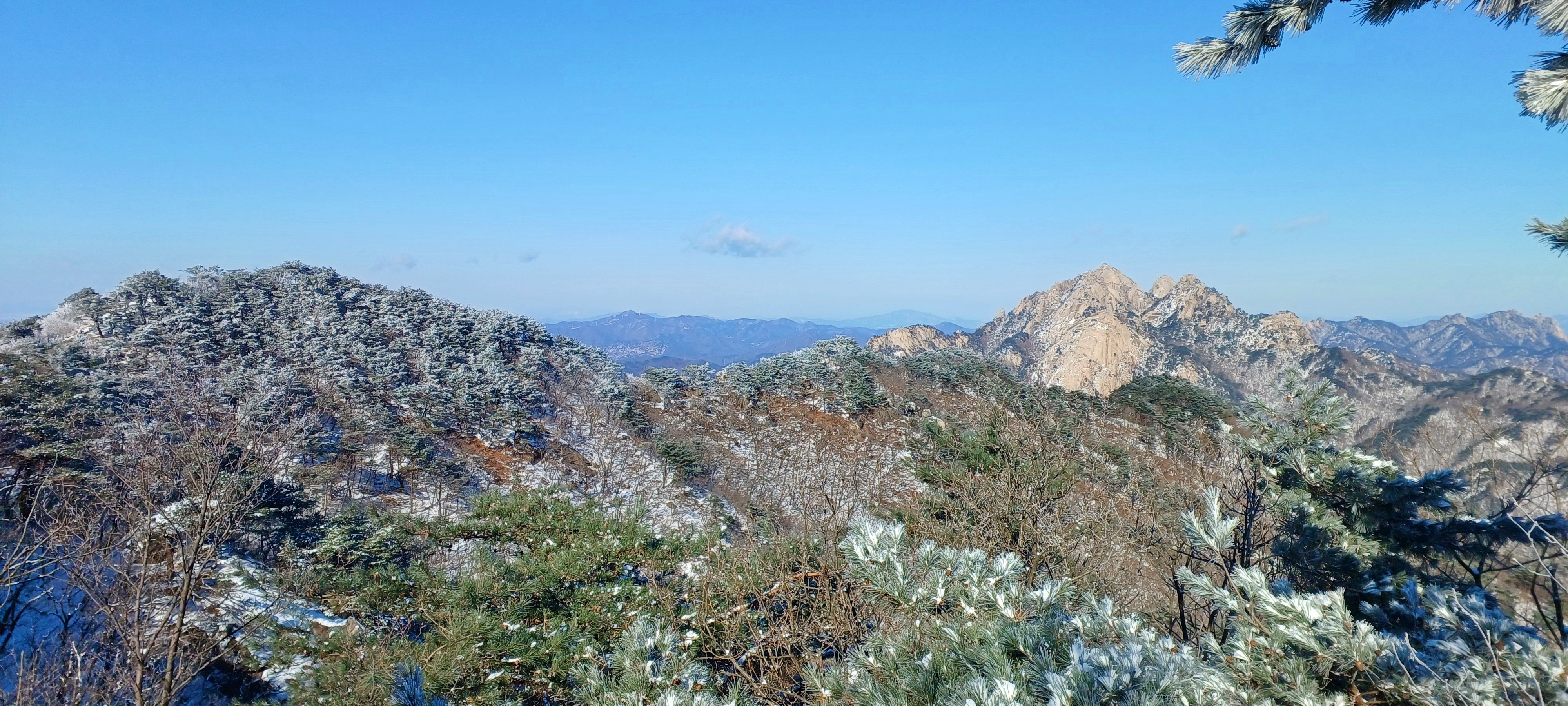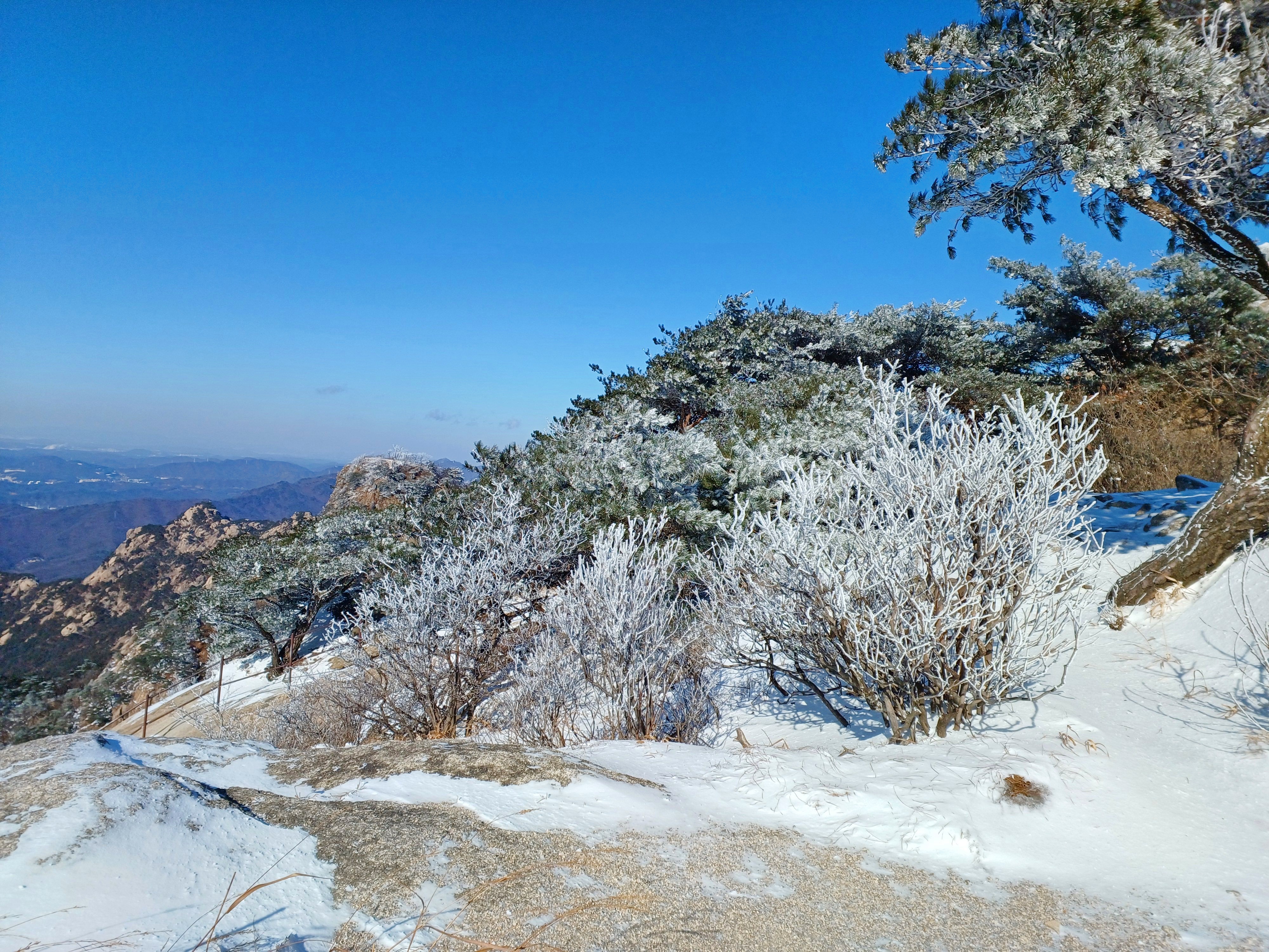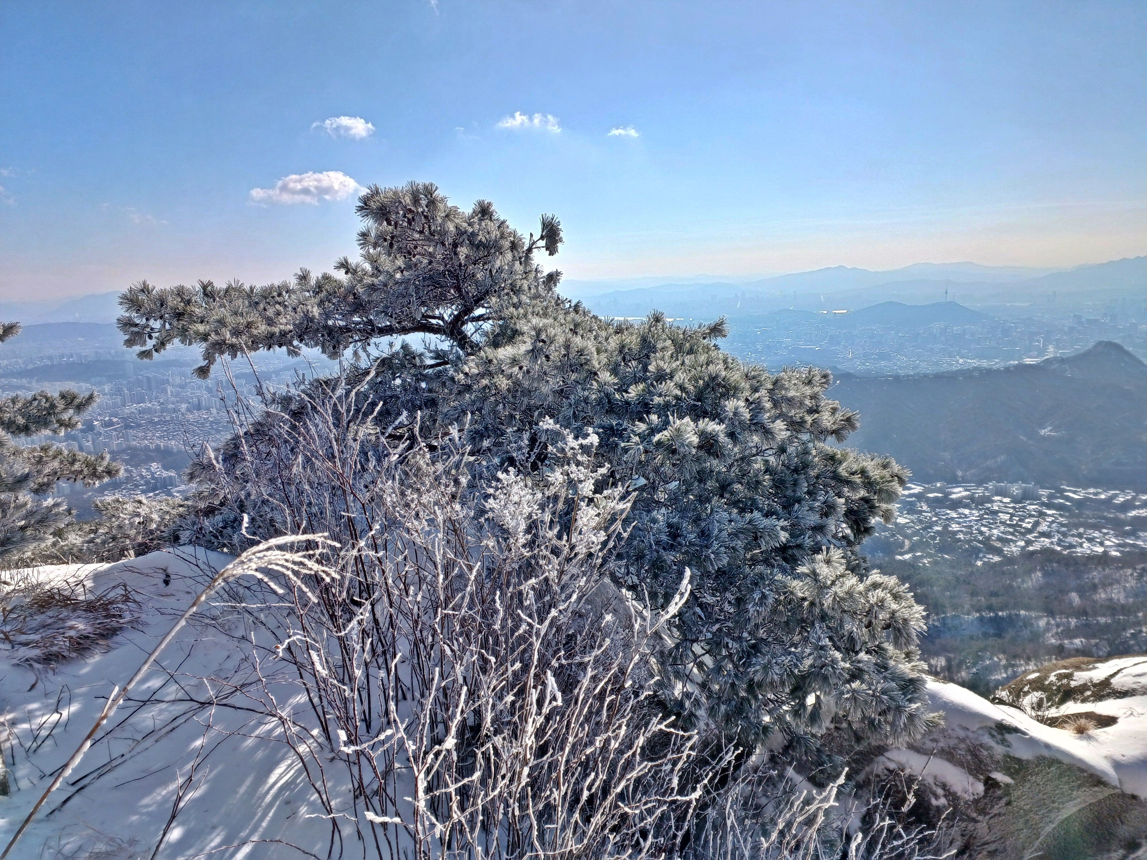바로 만나는 조망바위에서 소나무에 내려앉은 눈꽃을 담으며..............