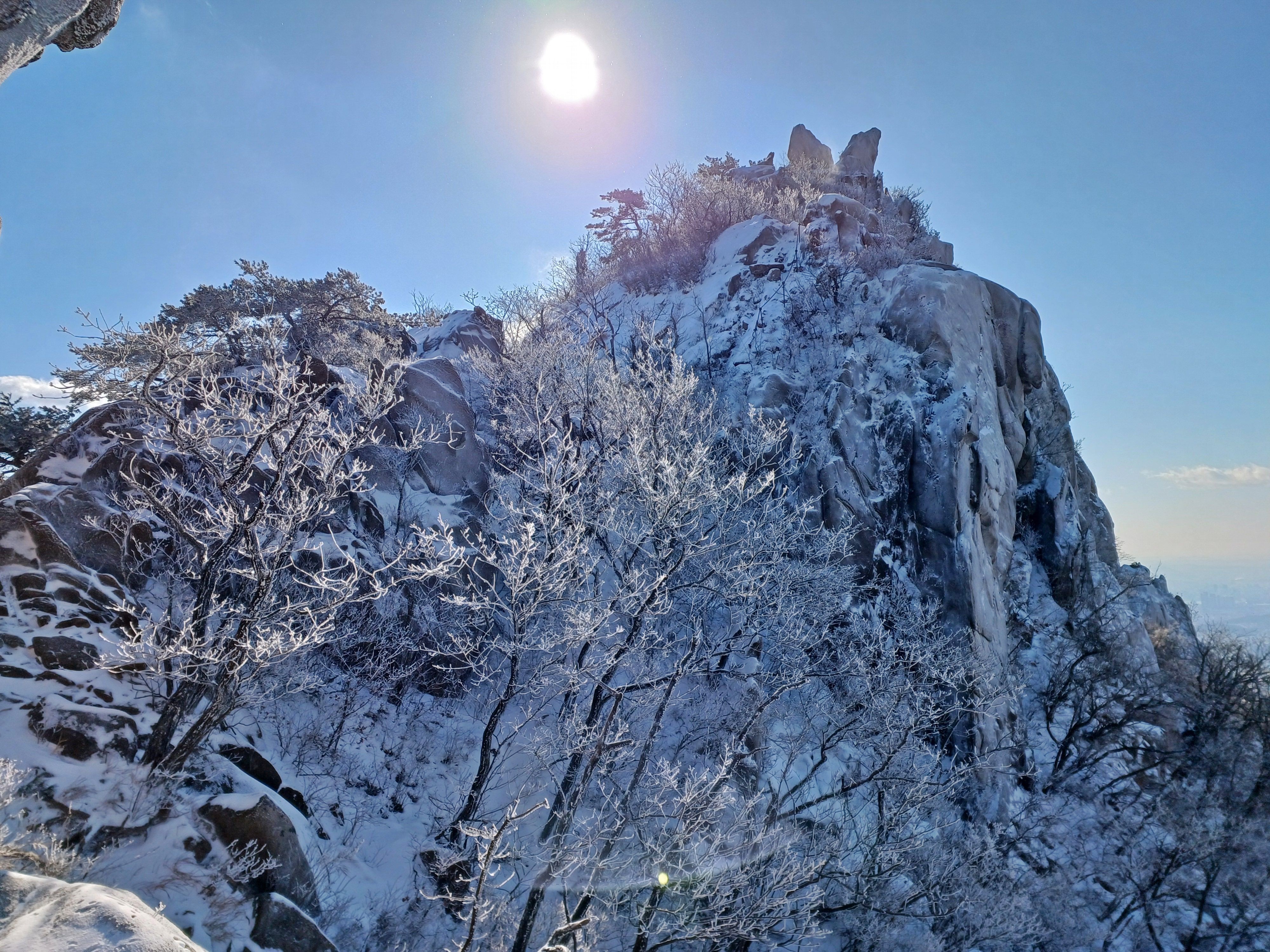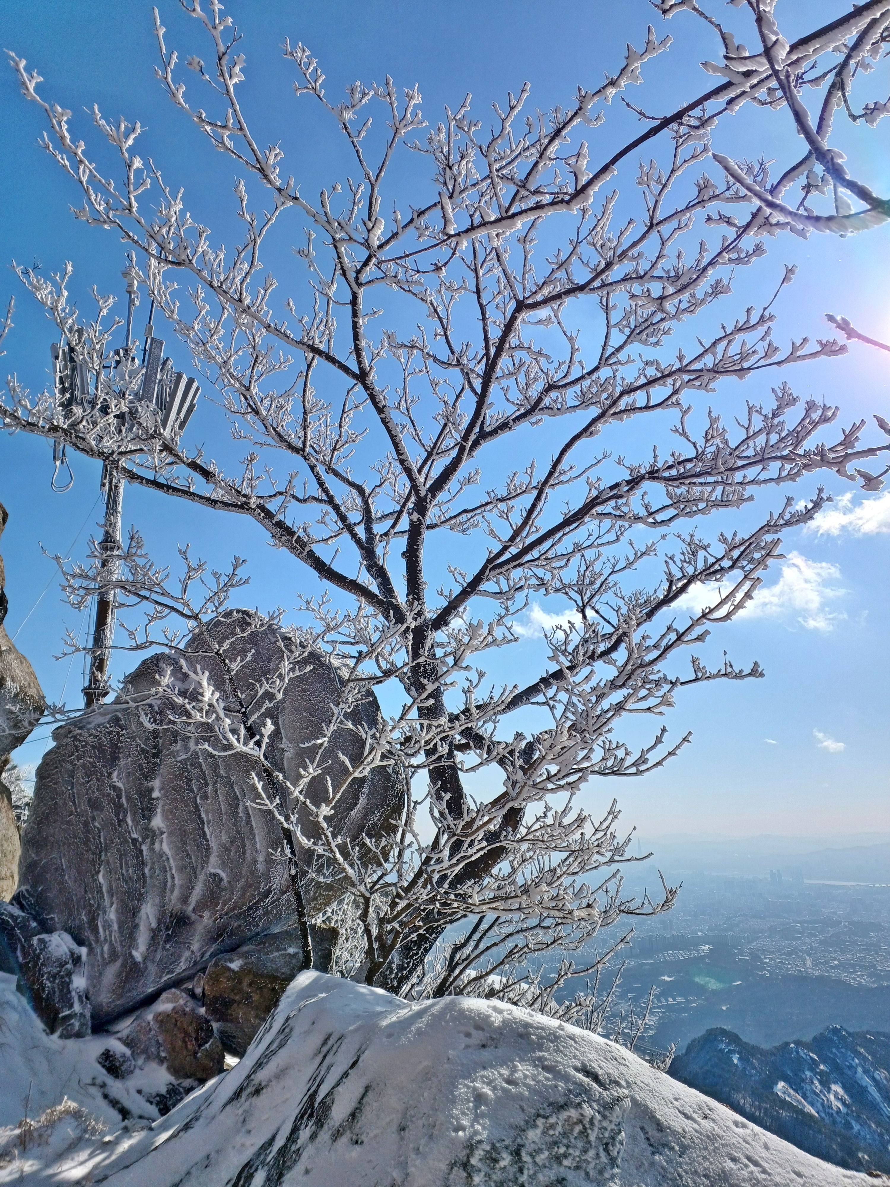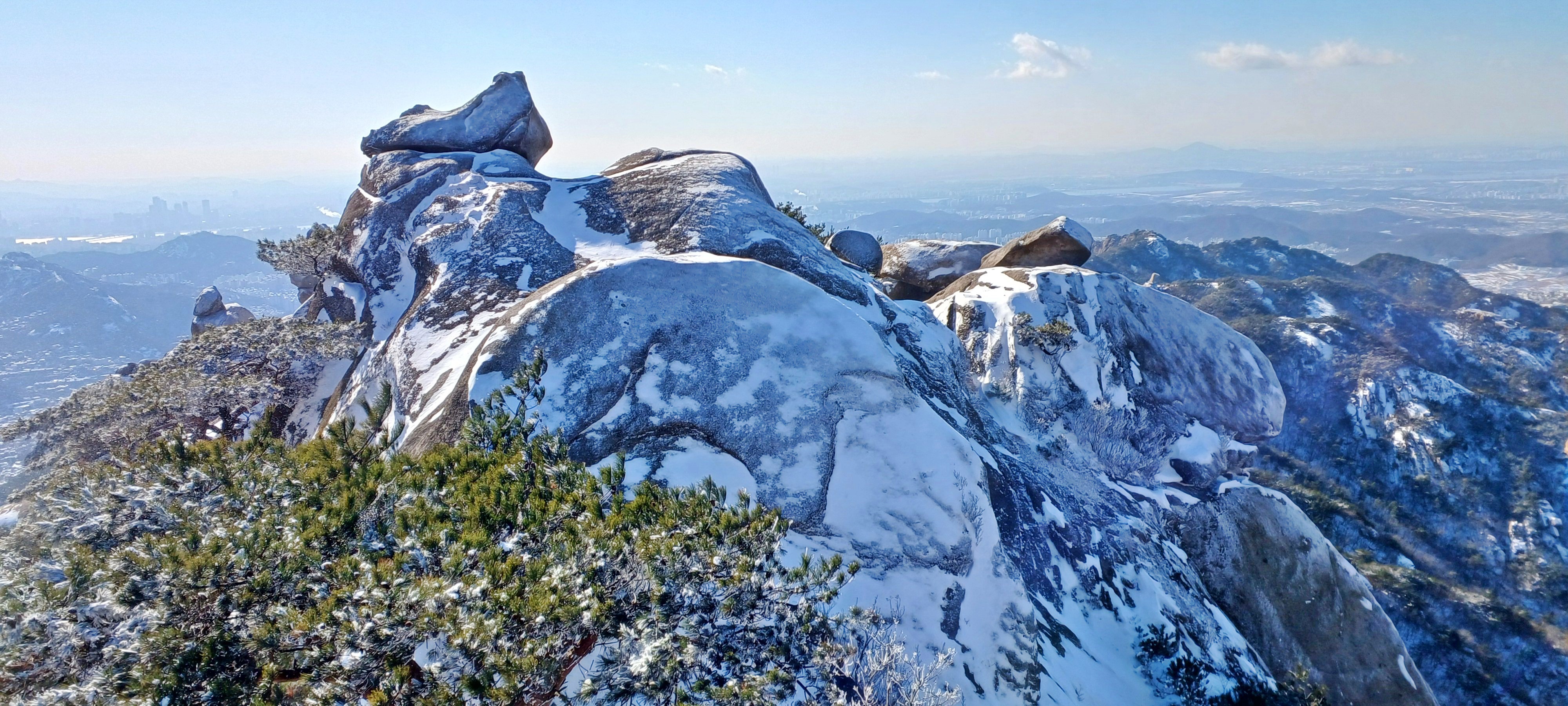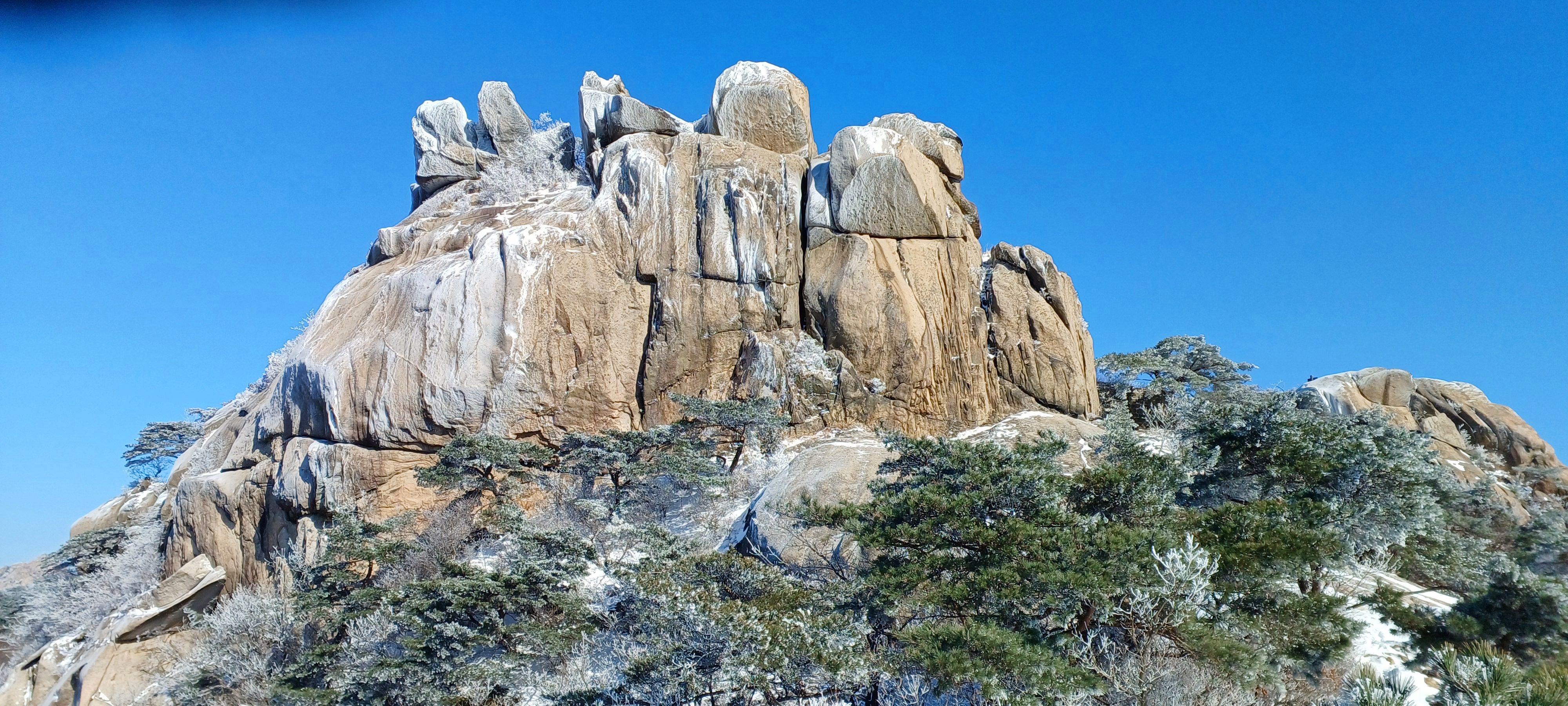 바로 만나는 조망바위에서 소나무에 내려앉은 눈꽃을 담으며..............
