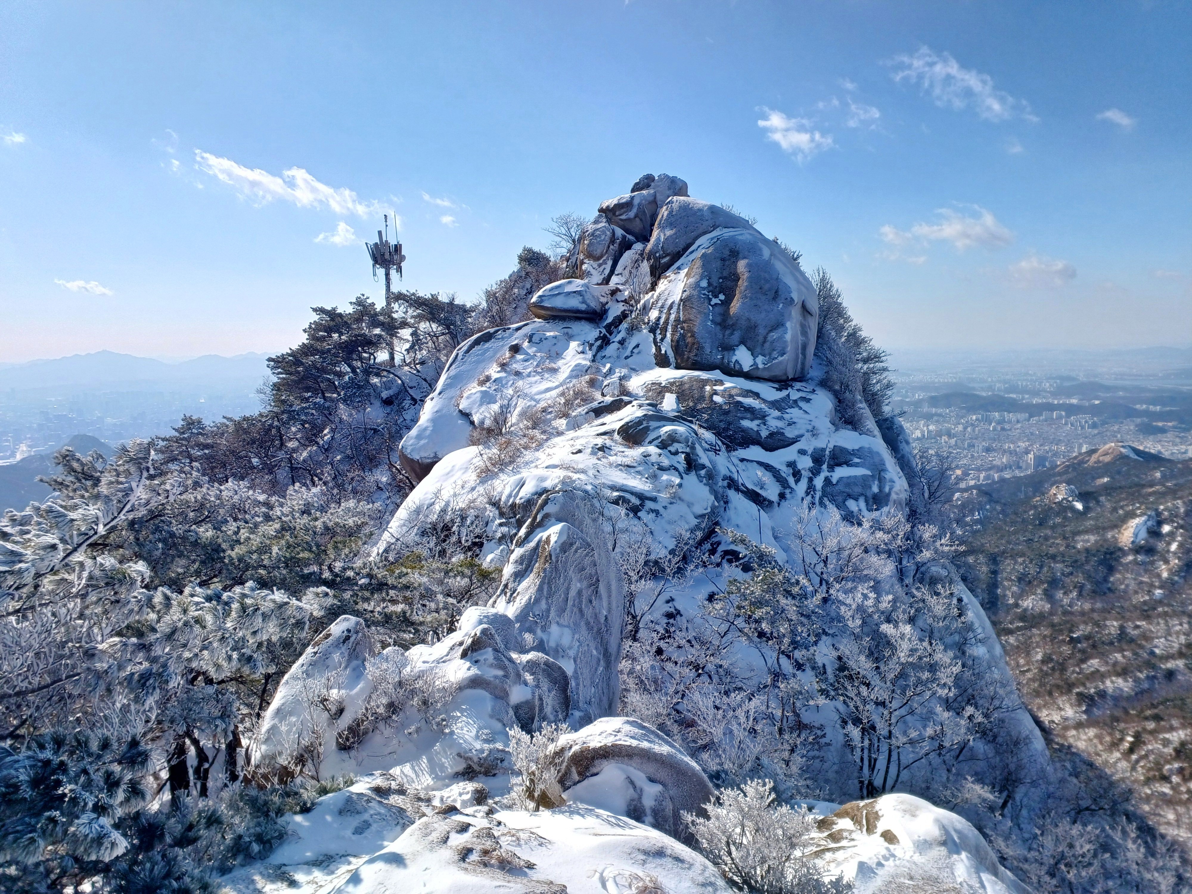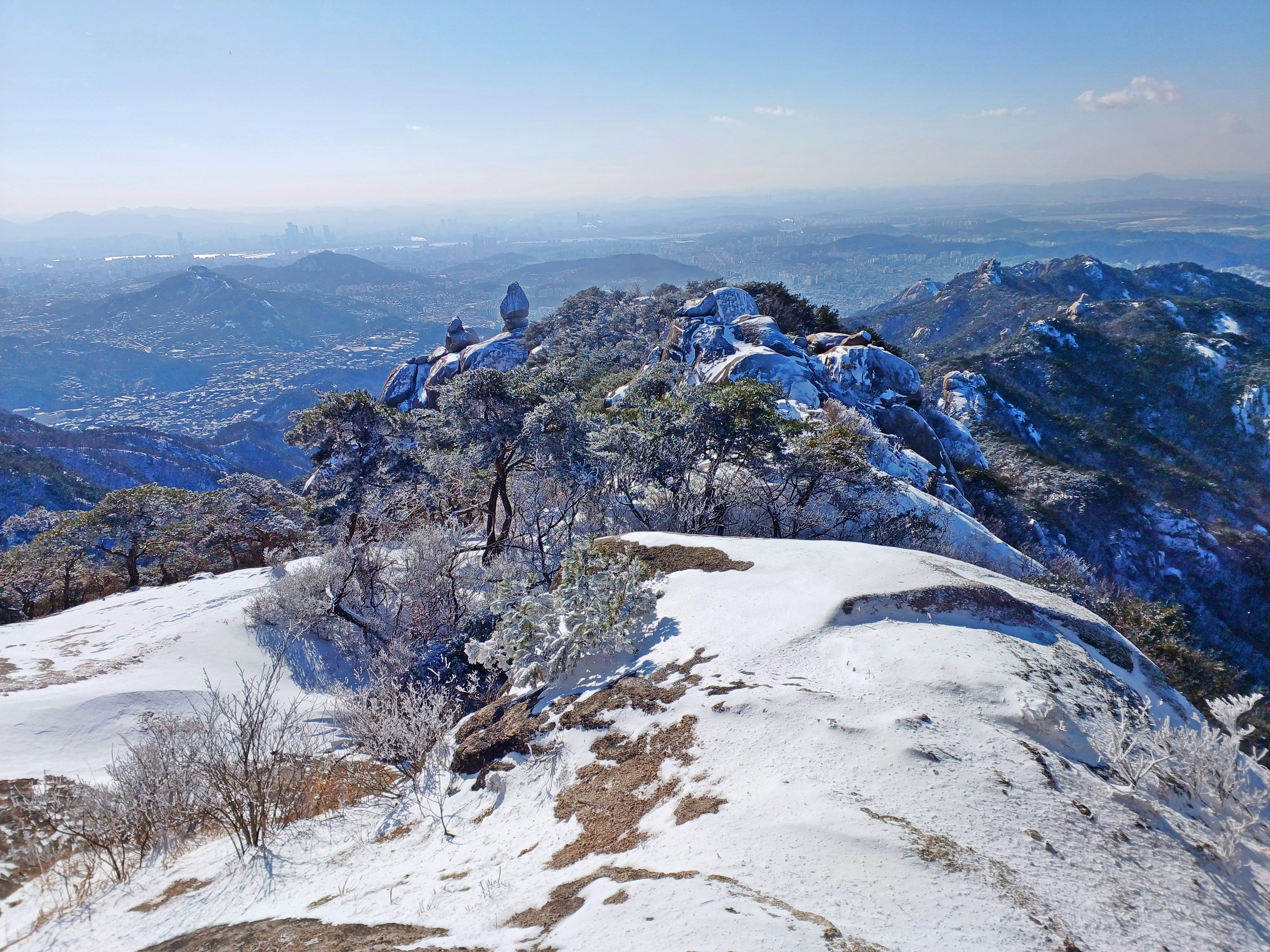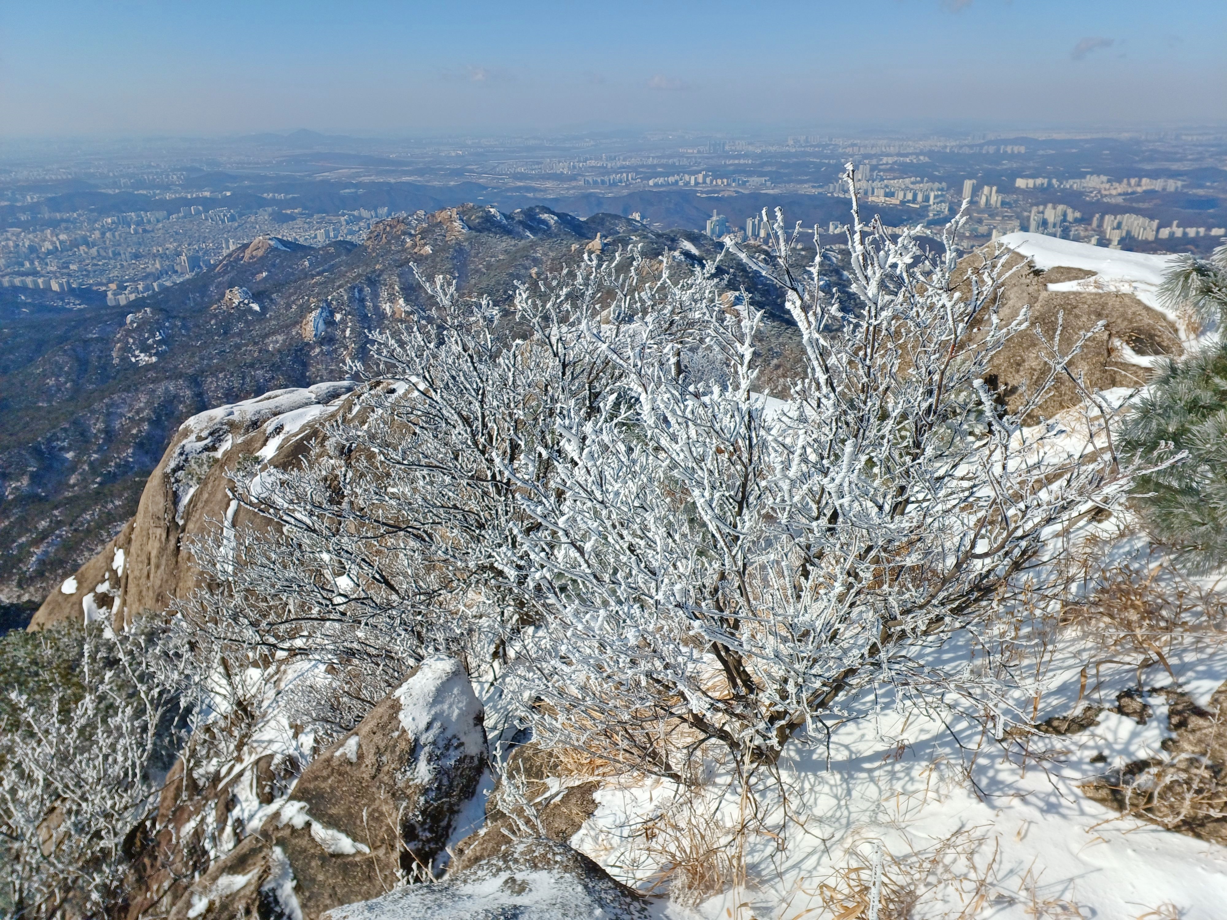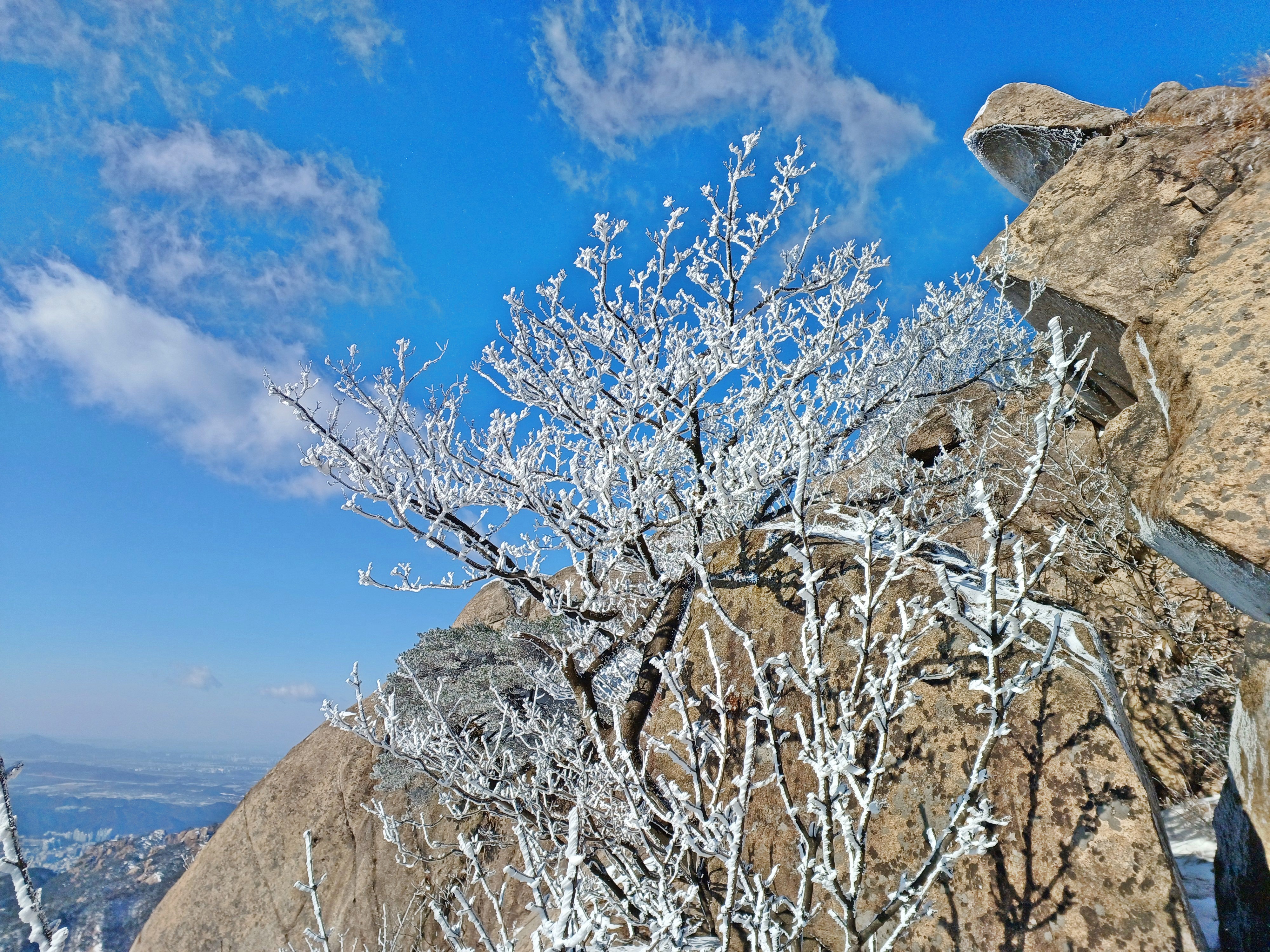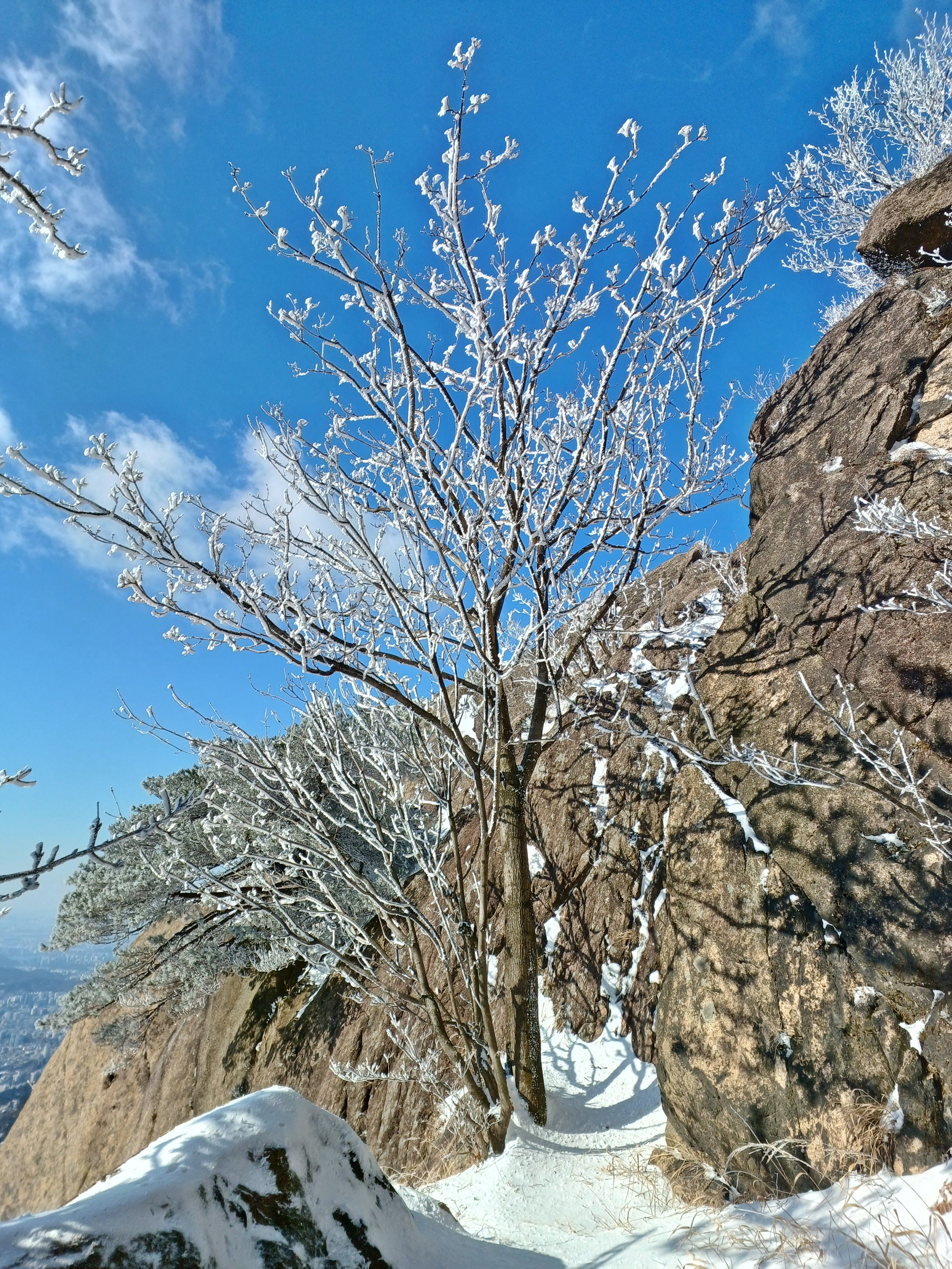 바로 만나는 조망바위에서 소나무에 내려앉은 눈꽃을 담으며..............