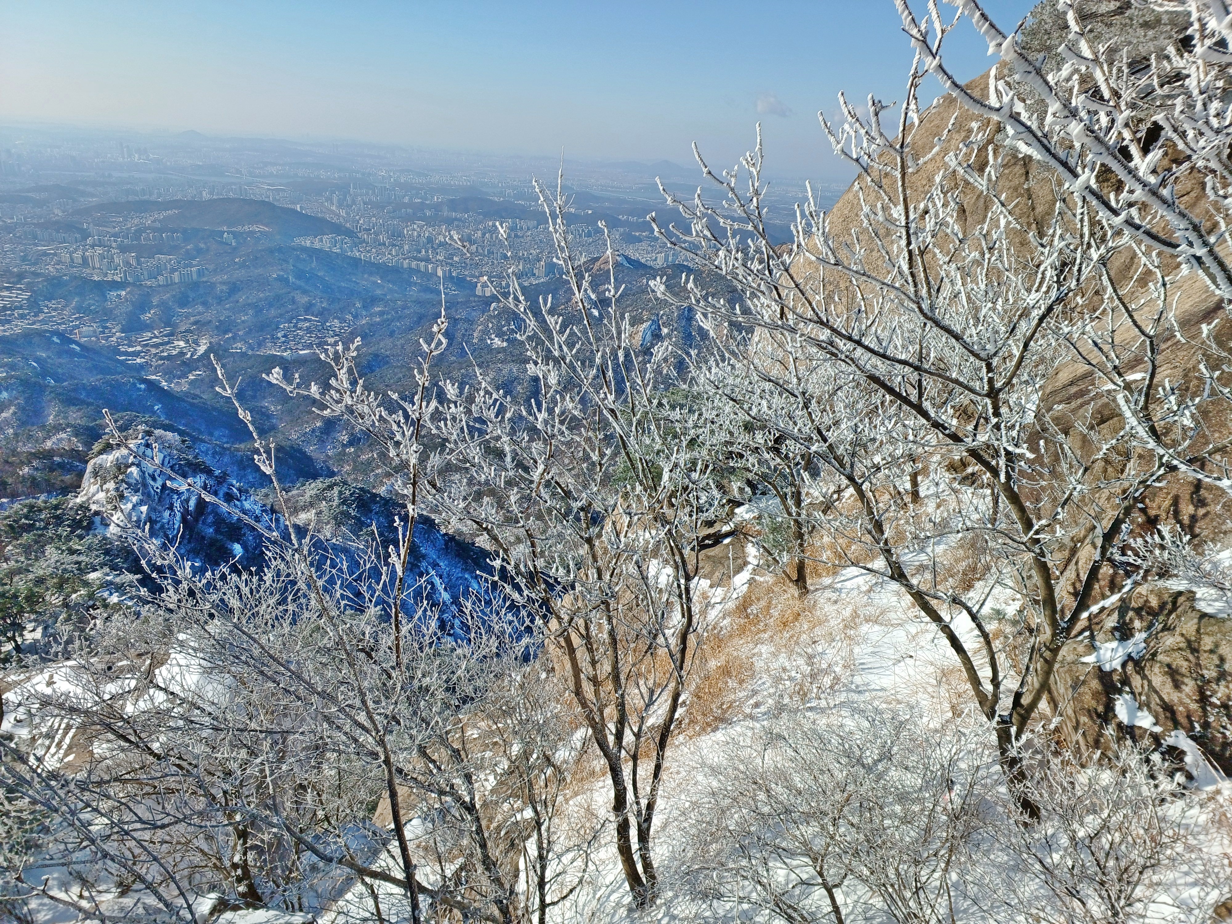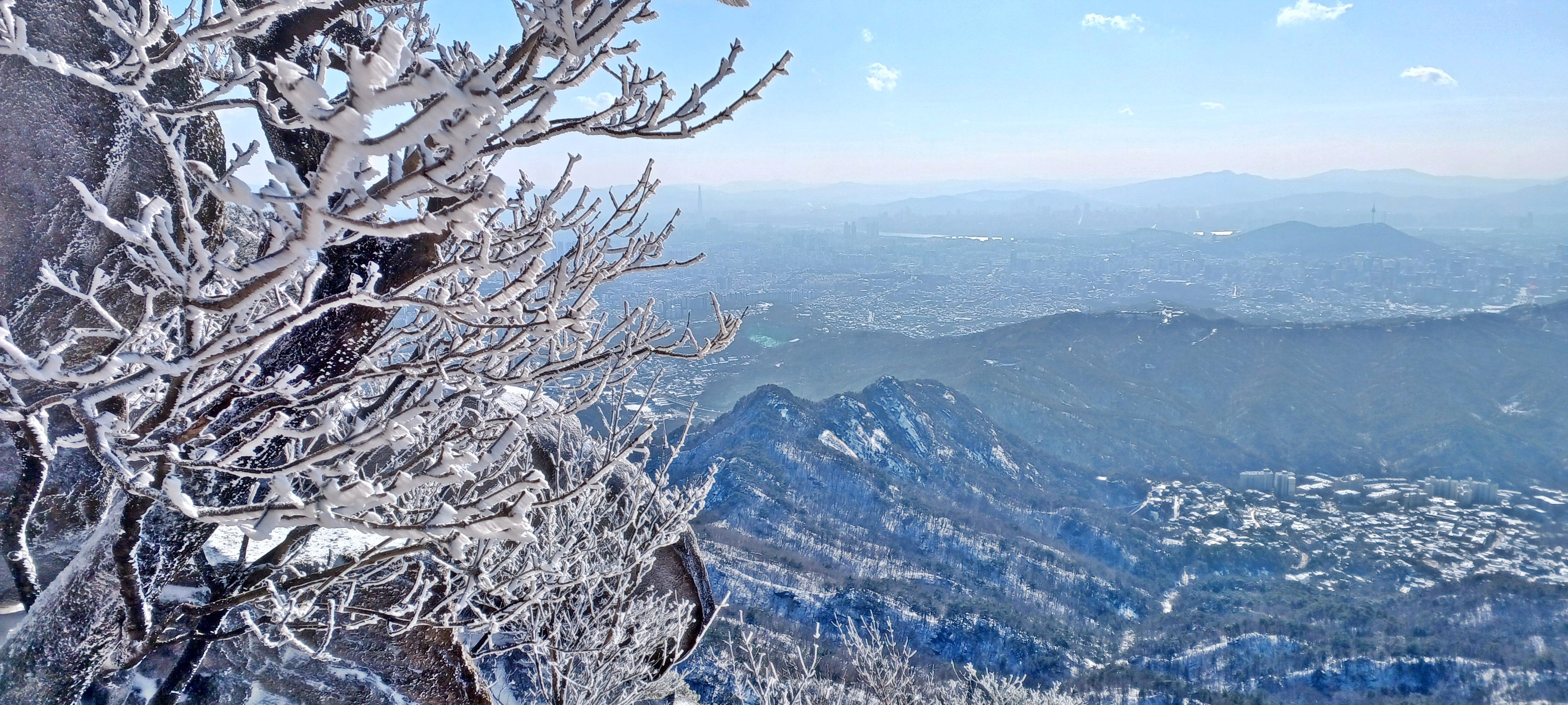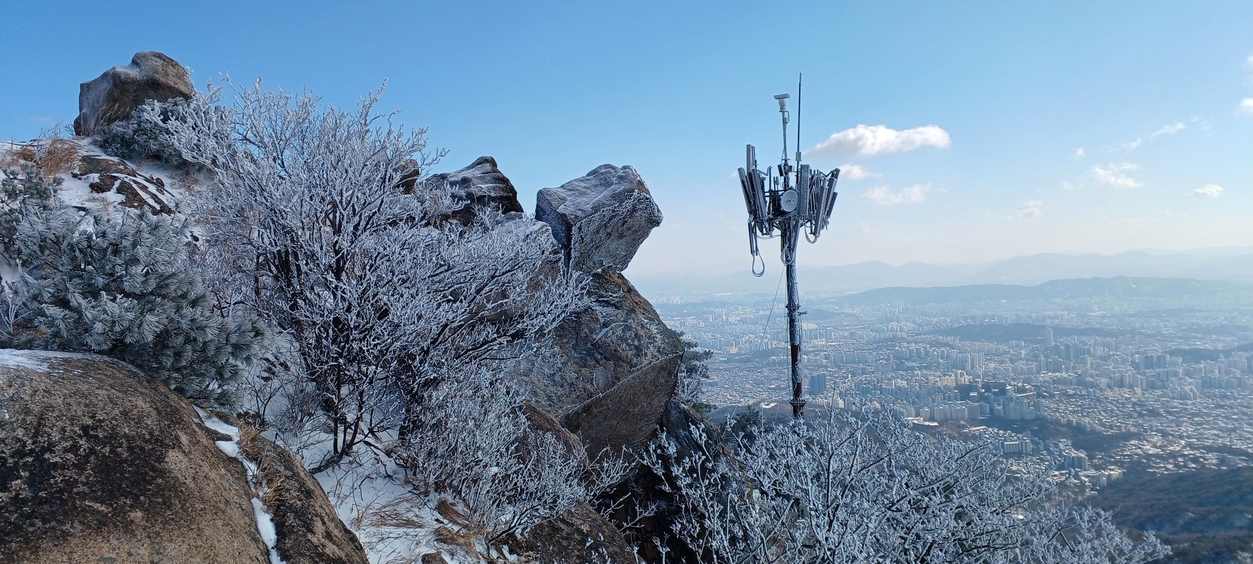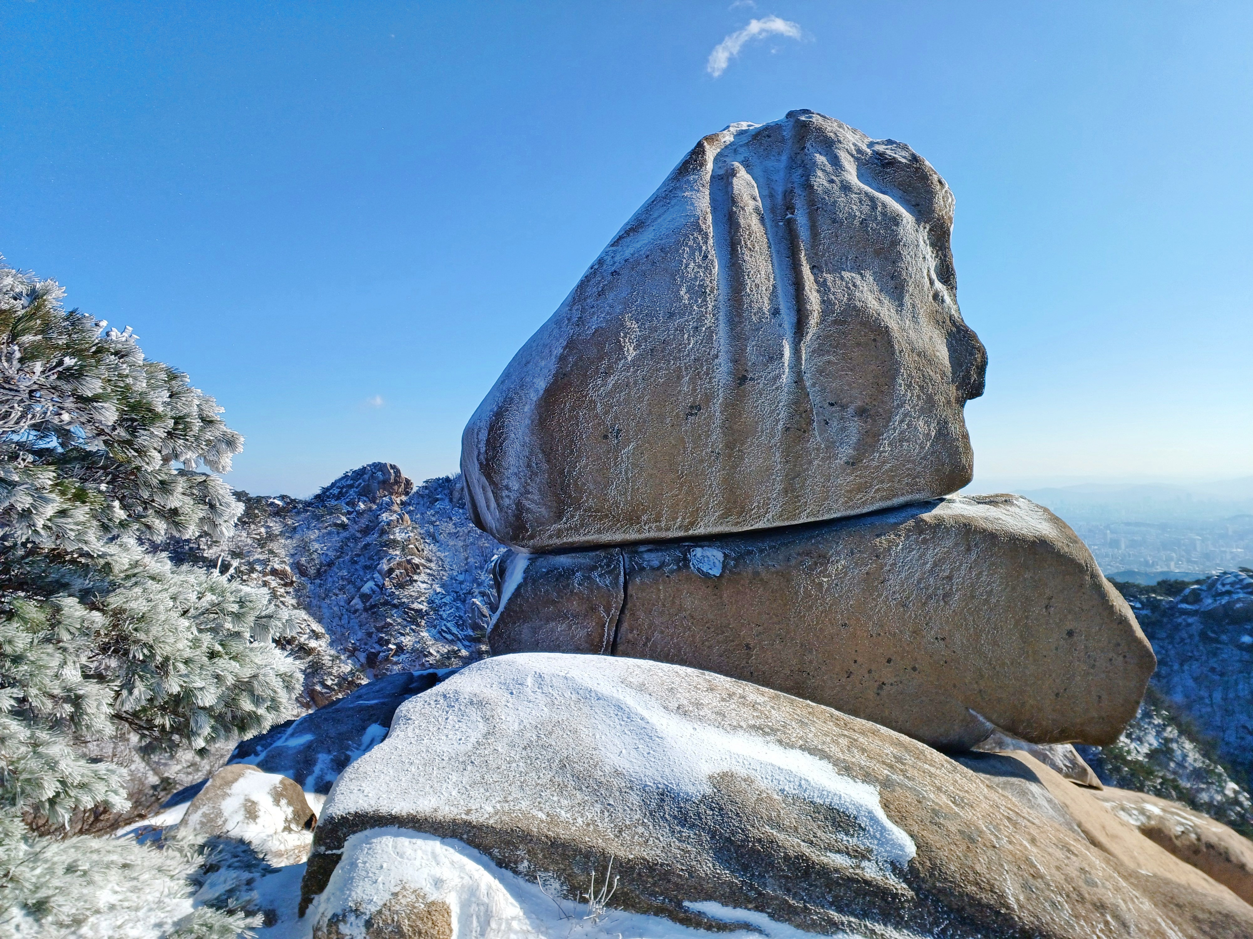 바로 만나는 조망바위에서 소나무에 내려앉은 눈꽃을 담으며..............