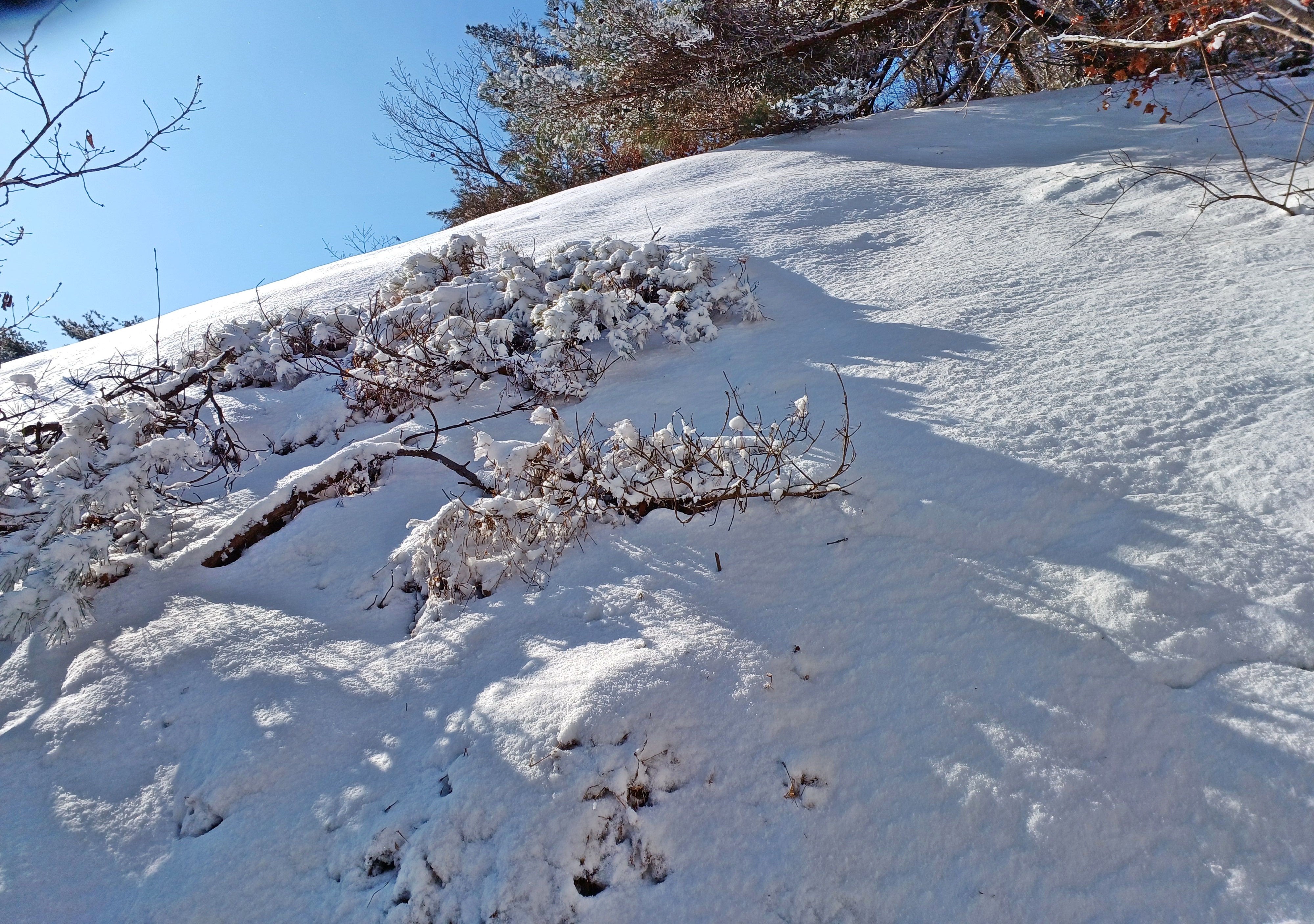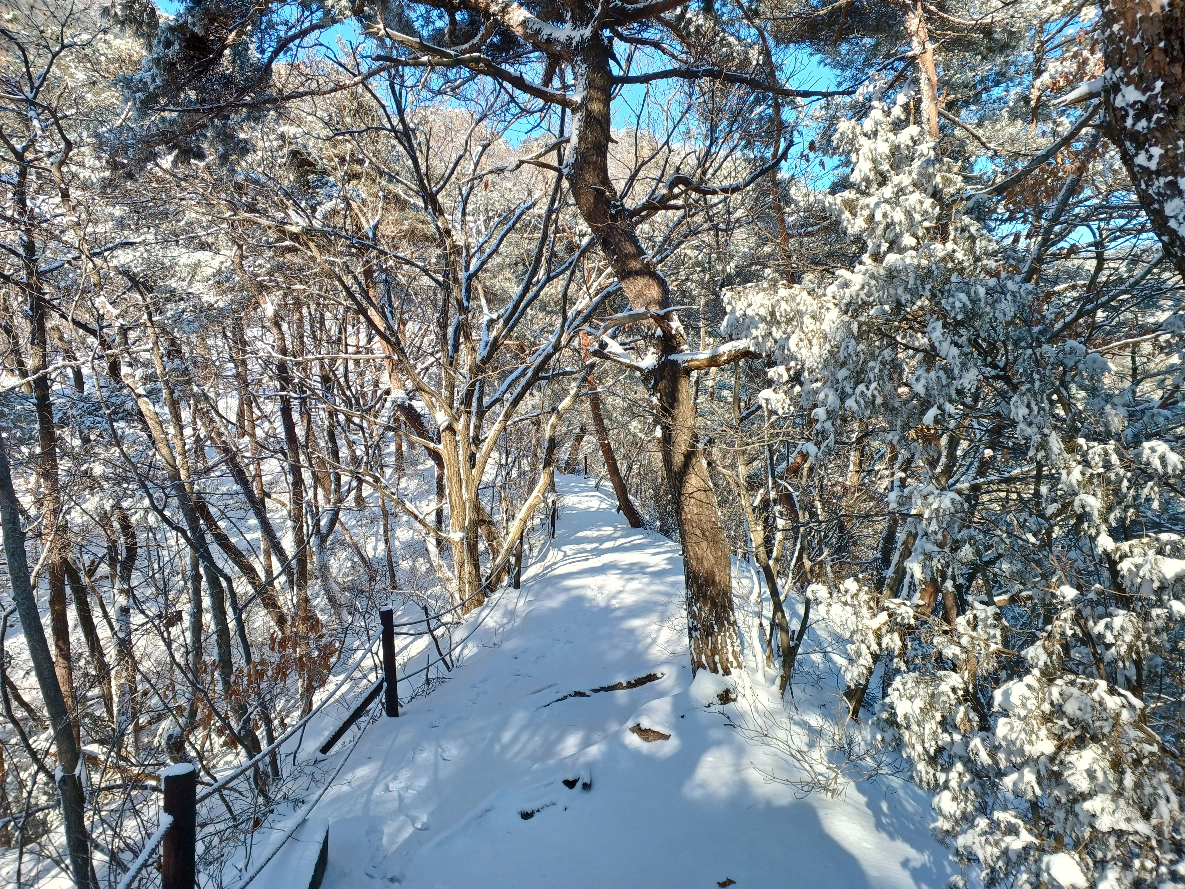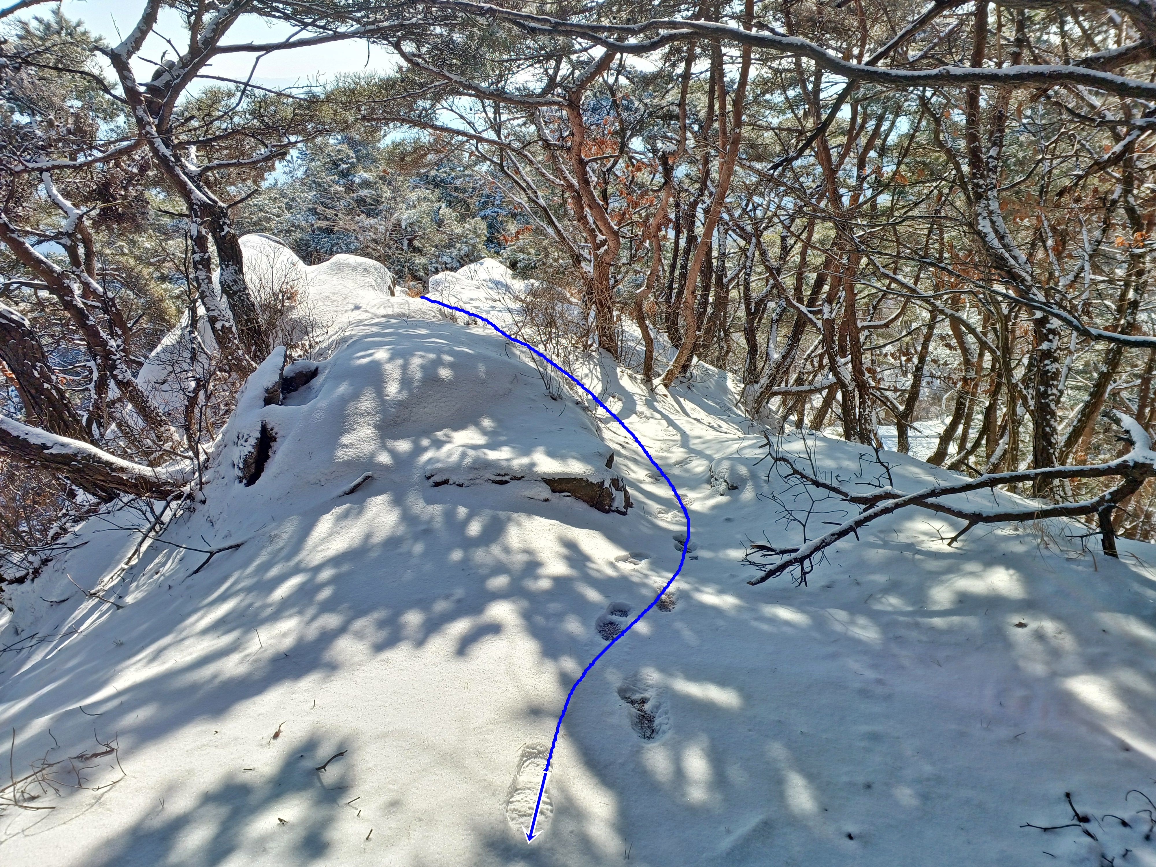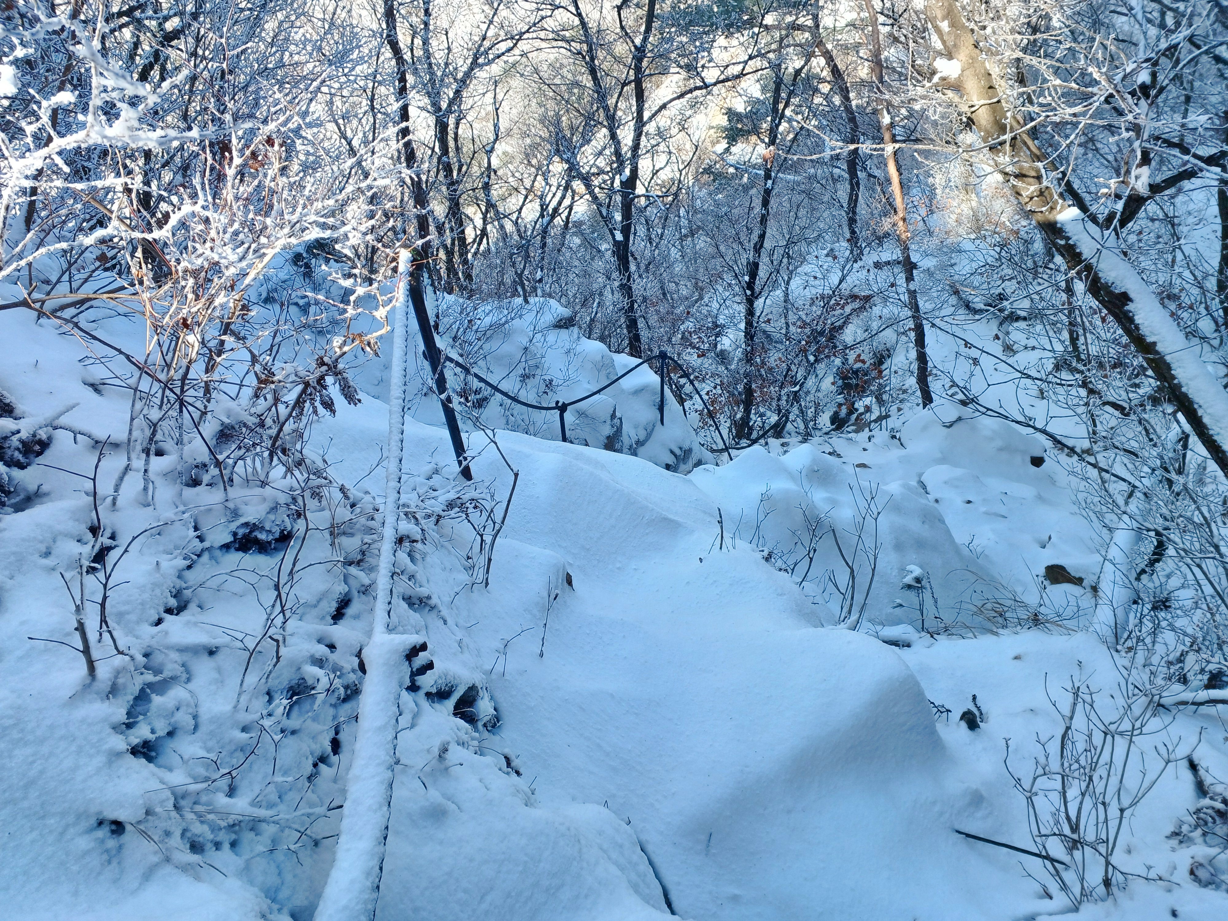 눈길에 뛰듯 빠른 걸음으로 나의 발자국을 남기며 하산합니다.