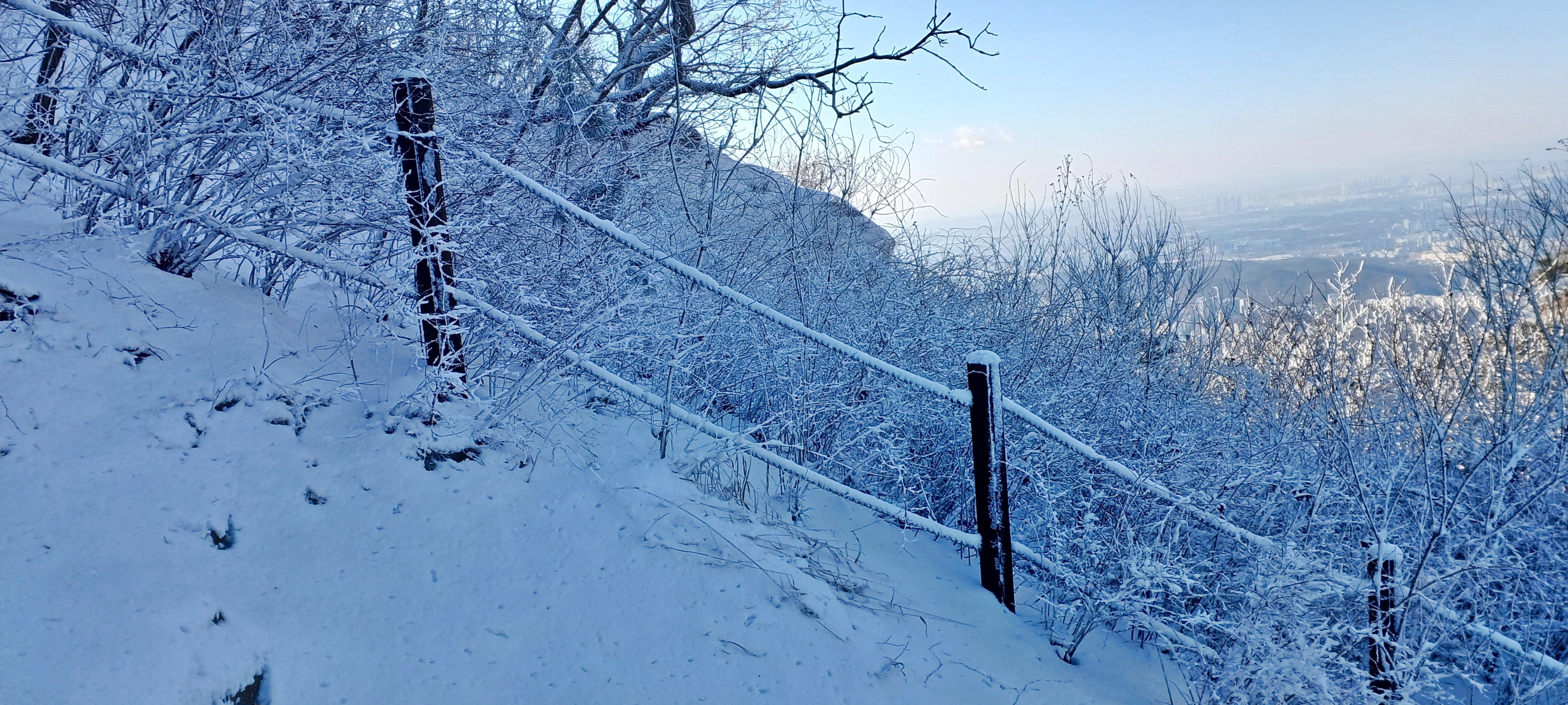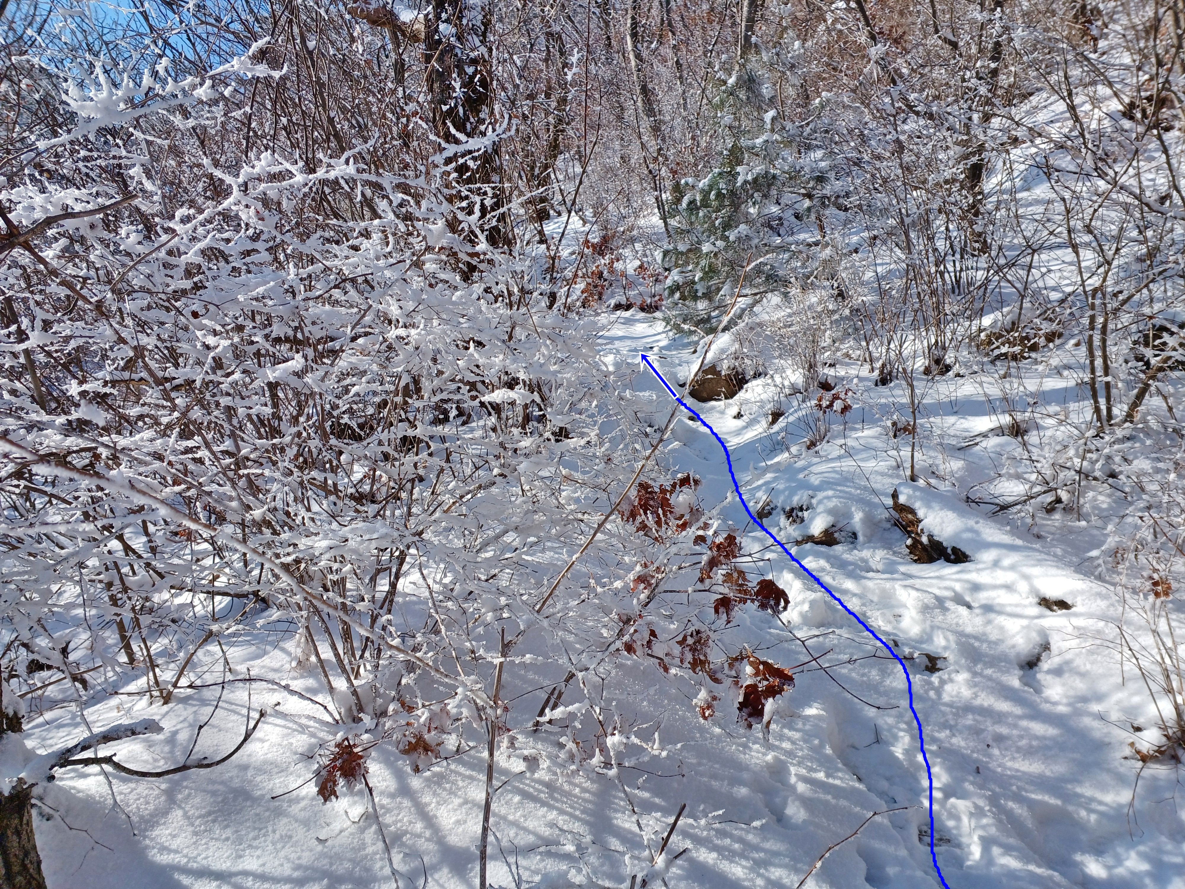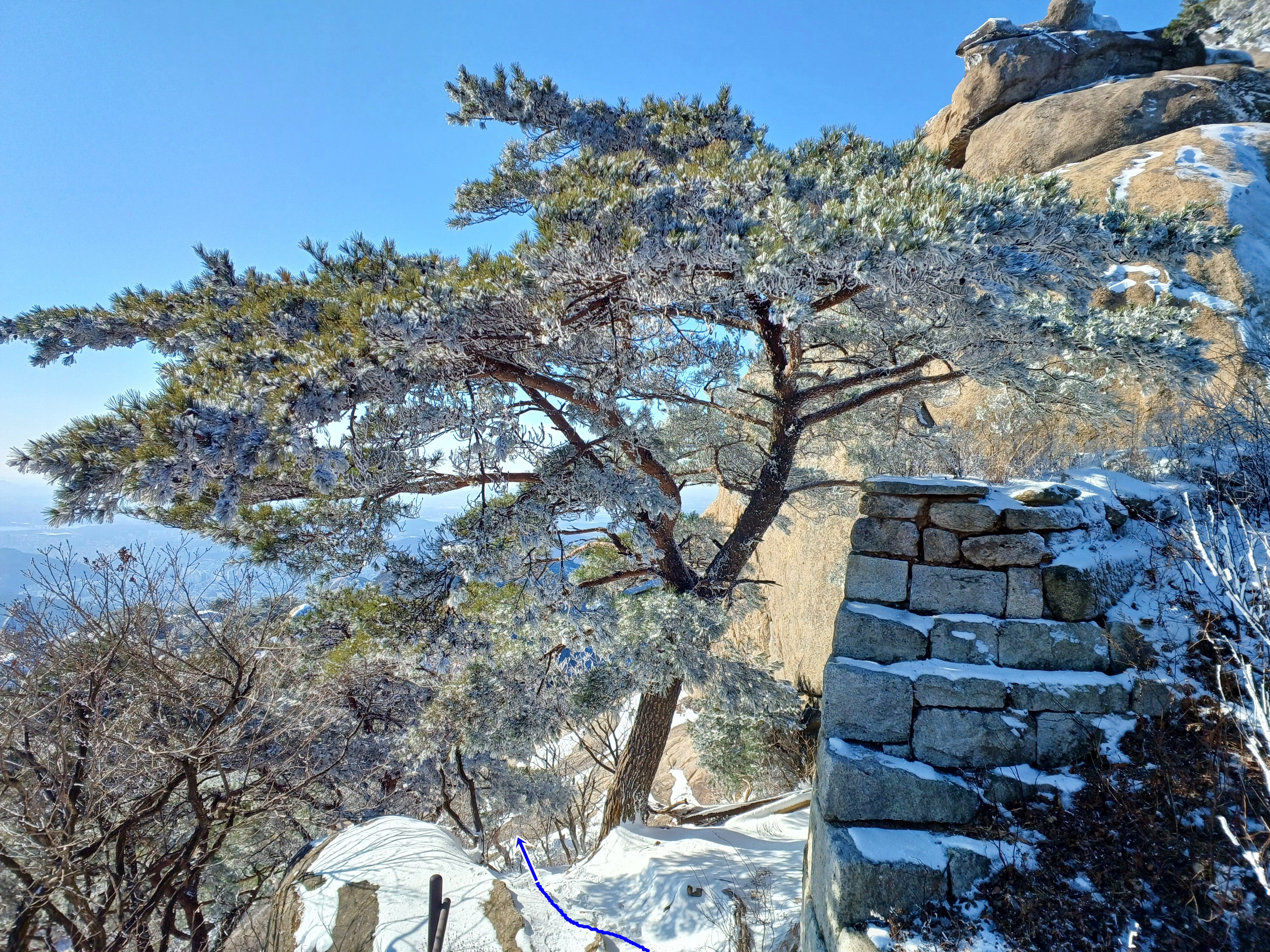 눈길에 뛰듯 빠른 걸음으로 나의 발자국을 남기며 하산합니다.