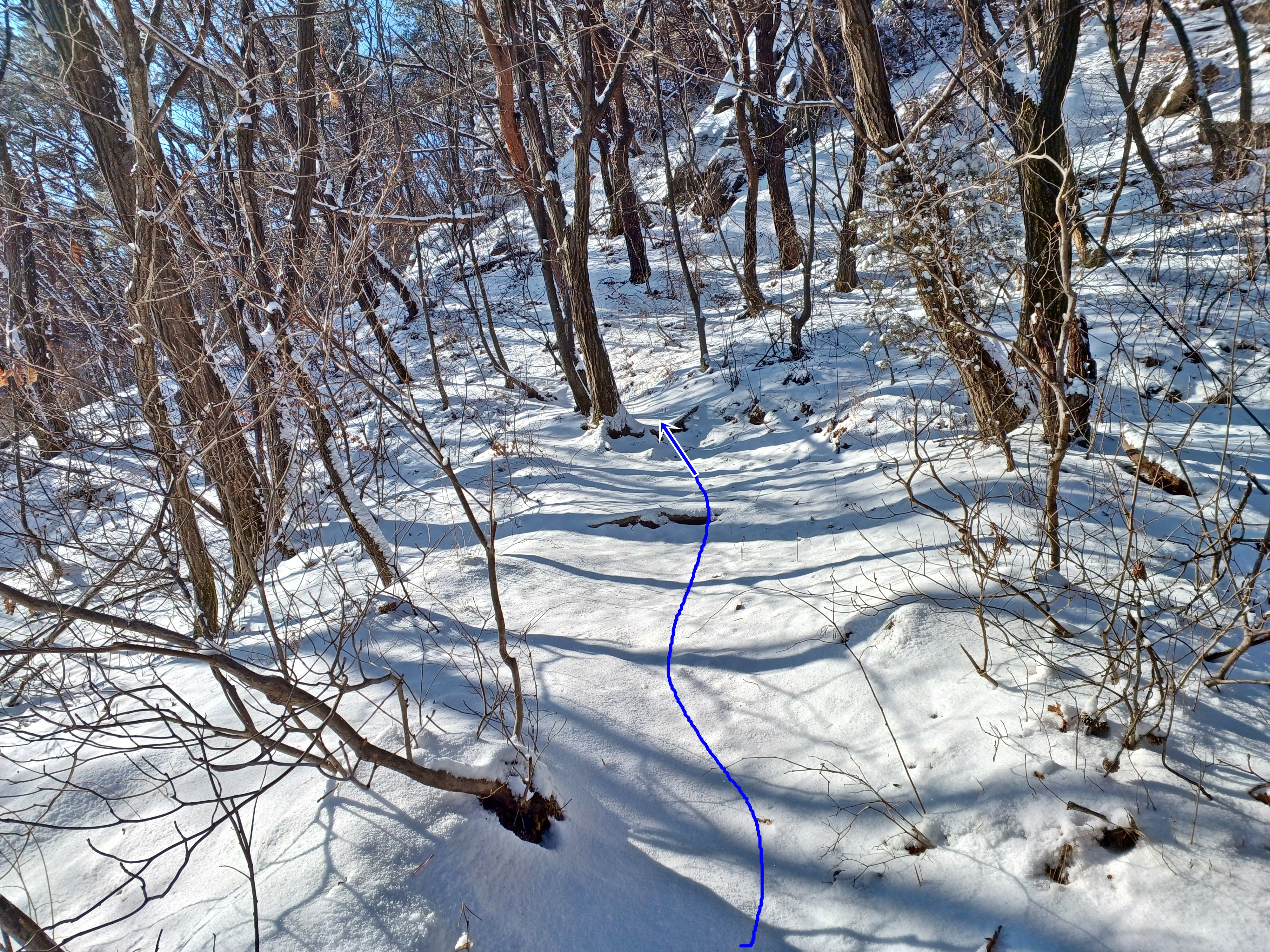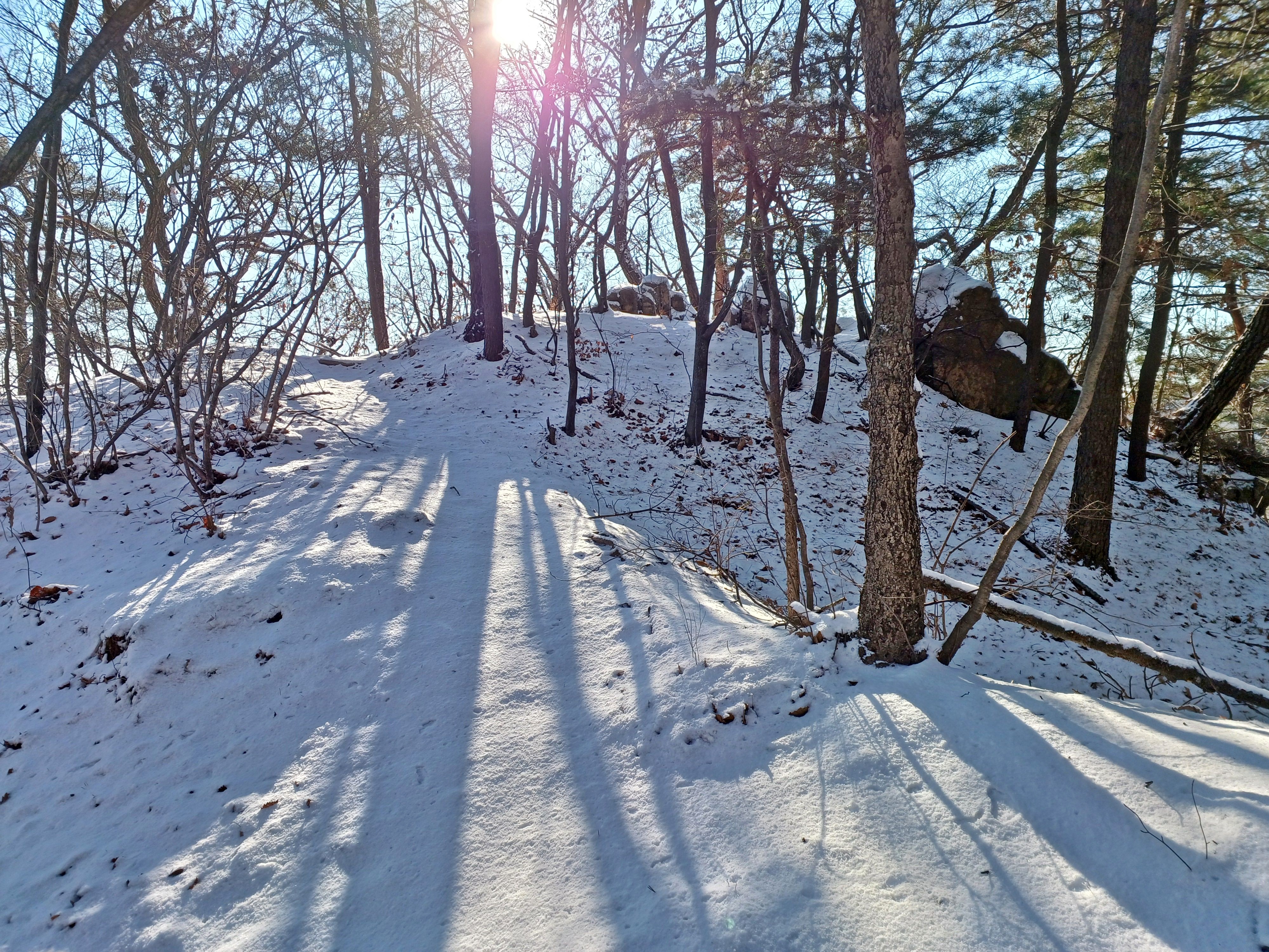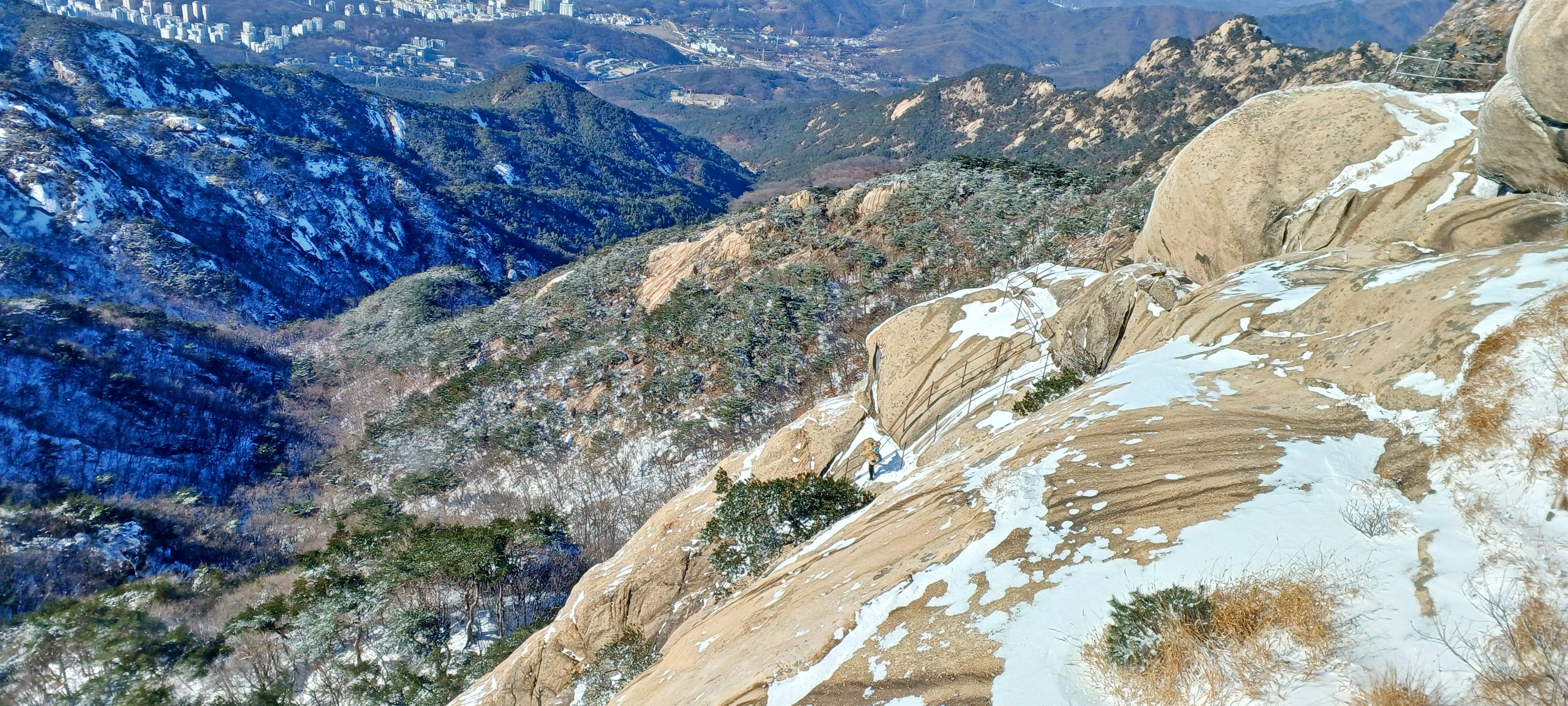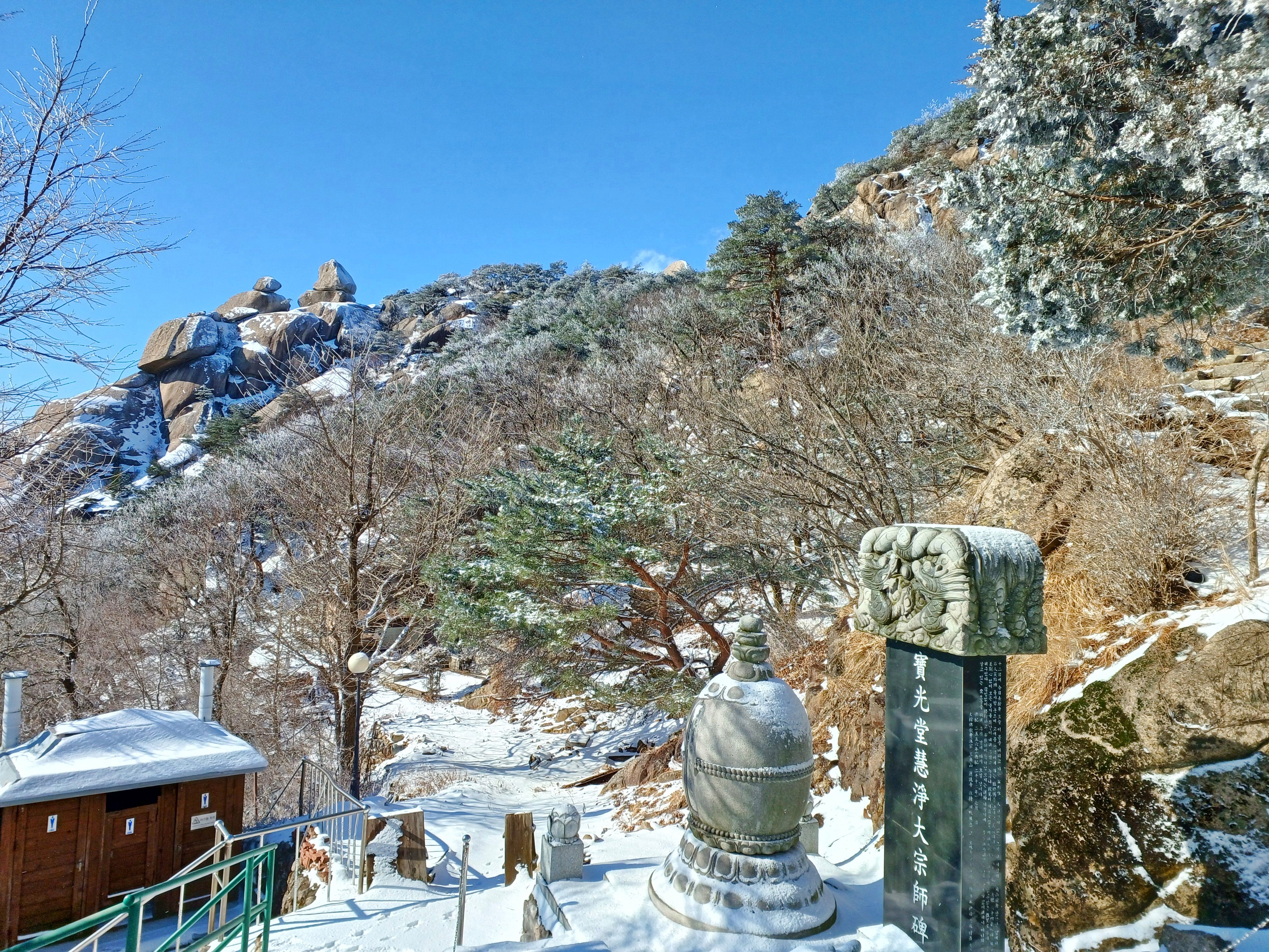 눈길에 뛰듯 빠른 걸음으로 나의 발자국을 남기며 하산합니다.