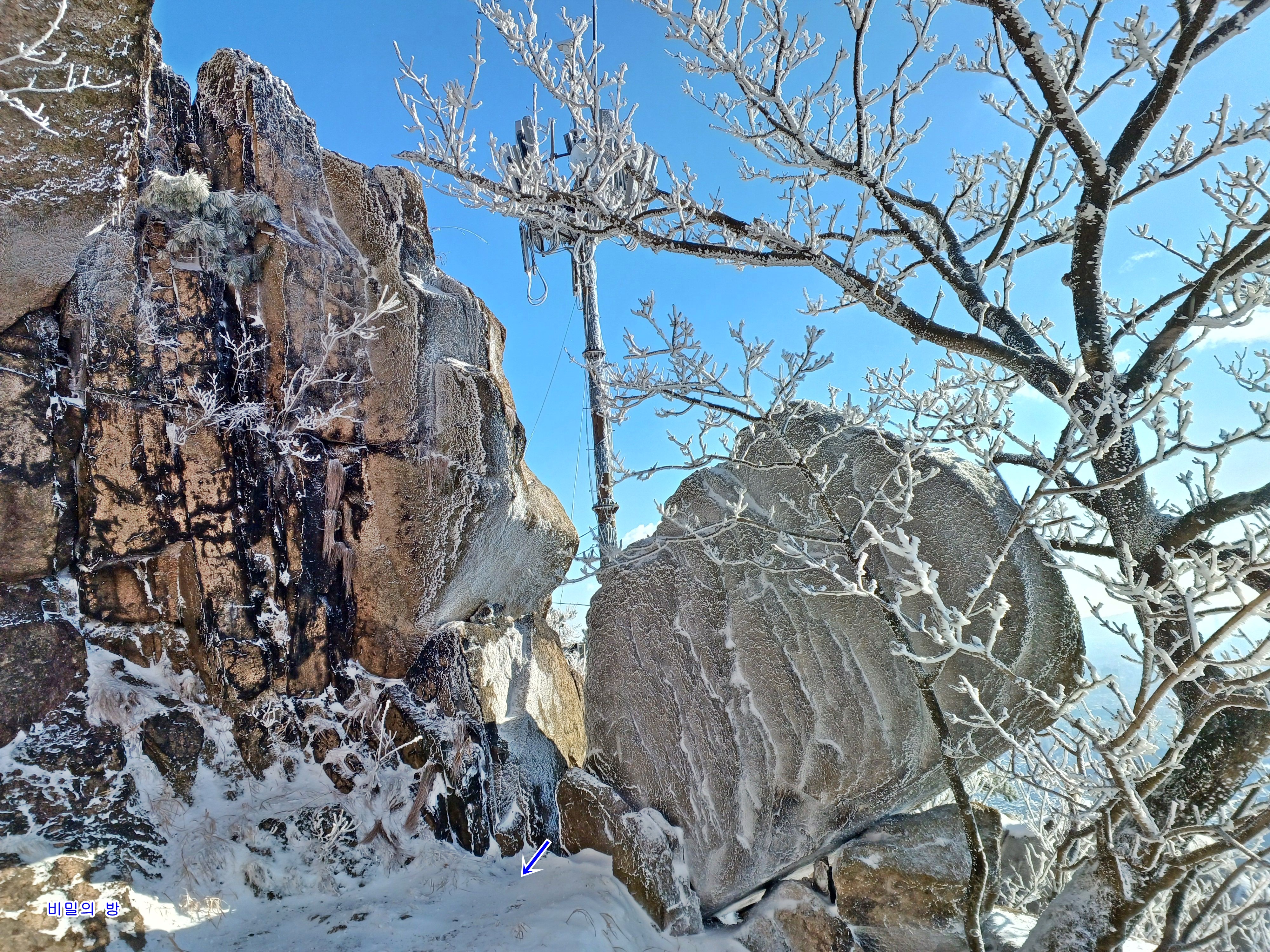 서있기조차 힘든 바람과 추위를 피해 산불감시탑 옆 비밀의 방으로 들어갑니다.