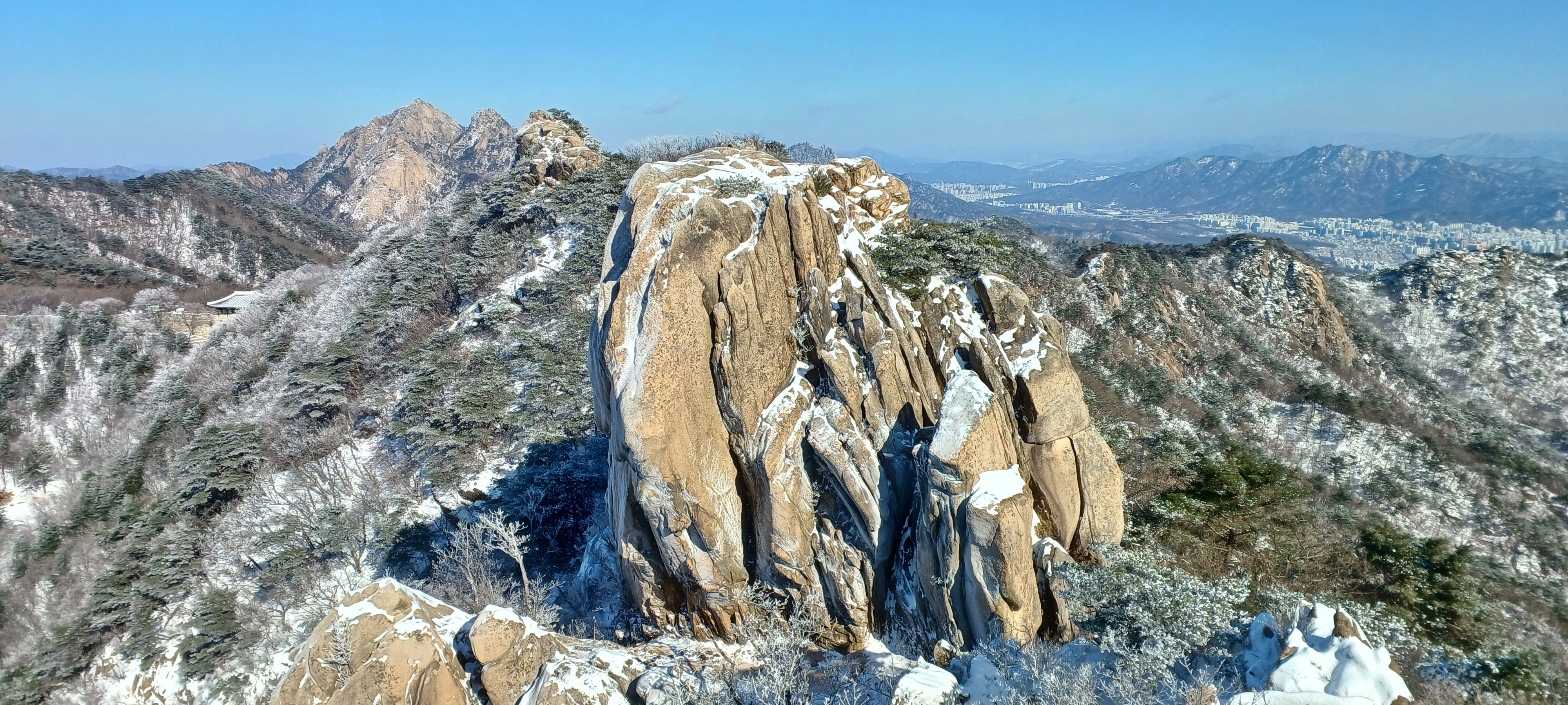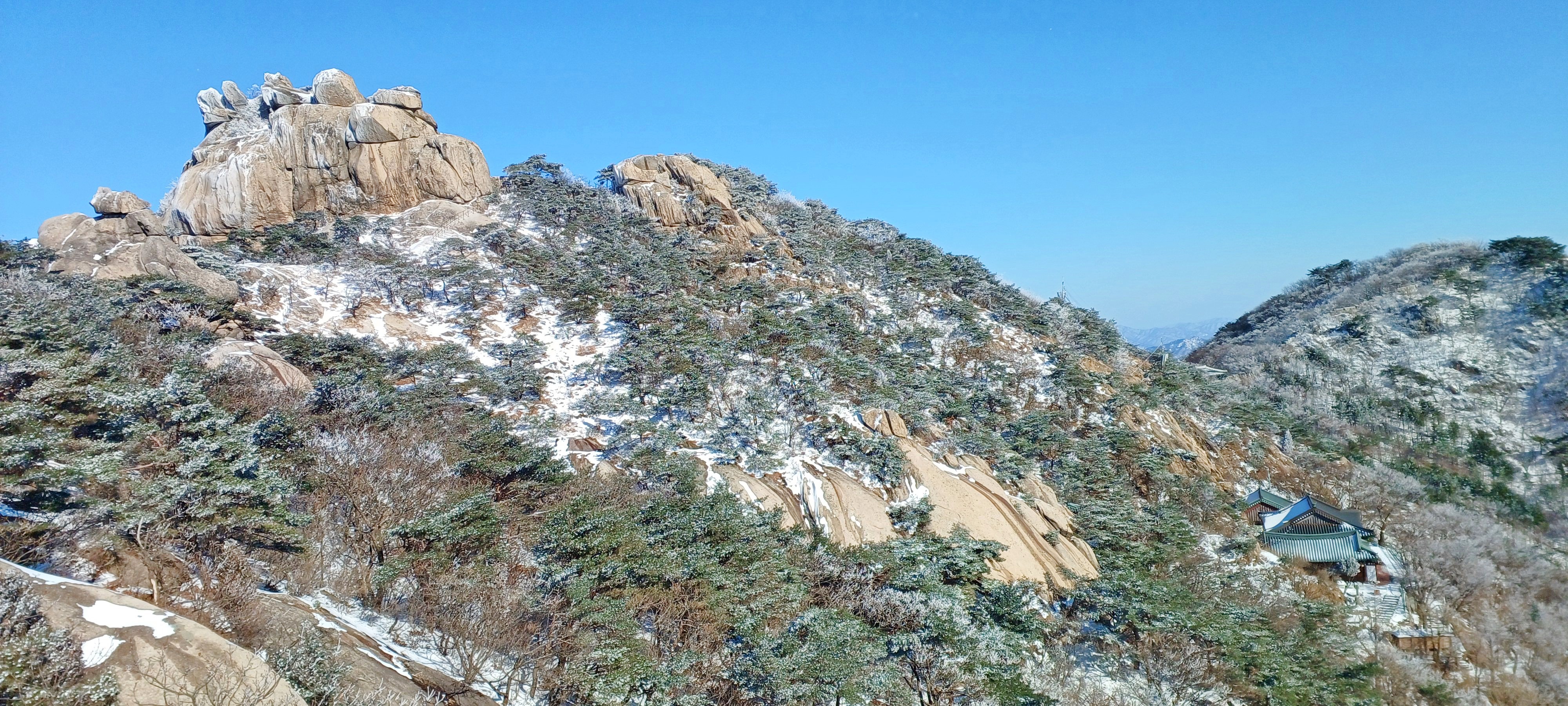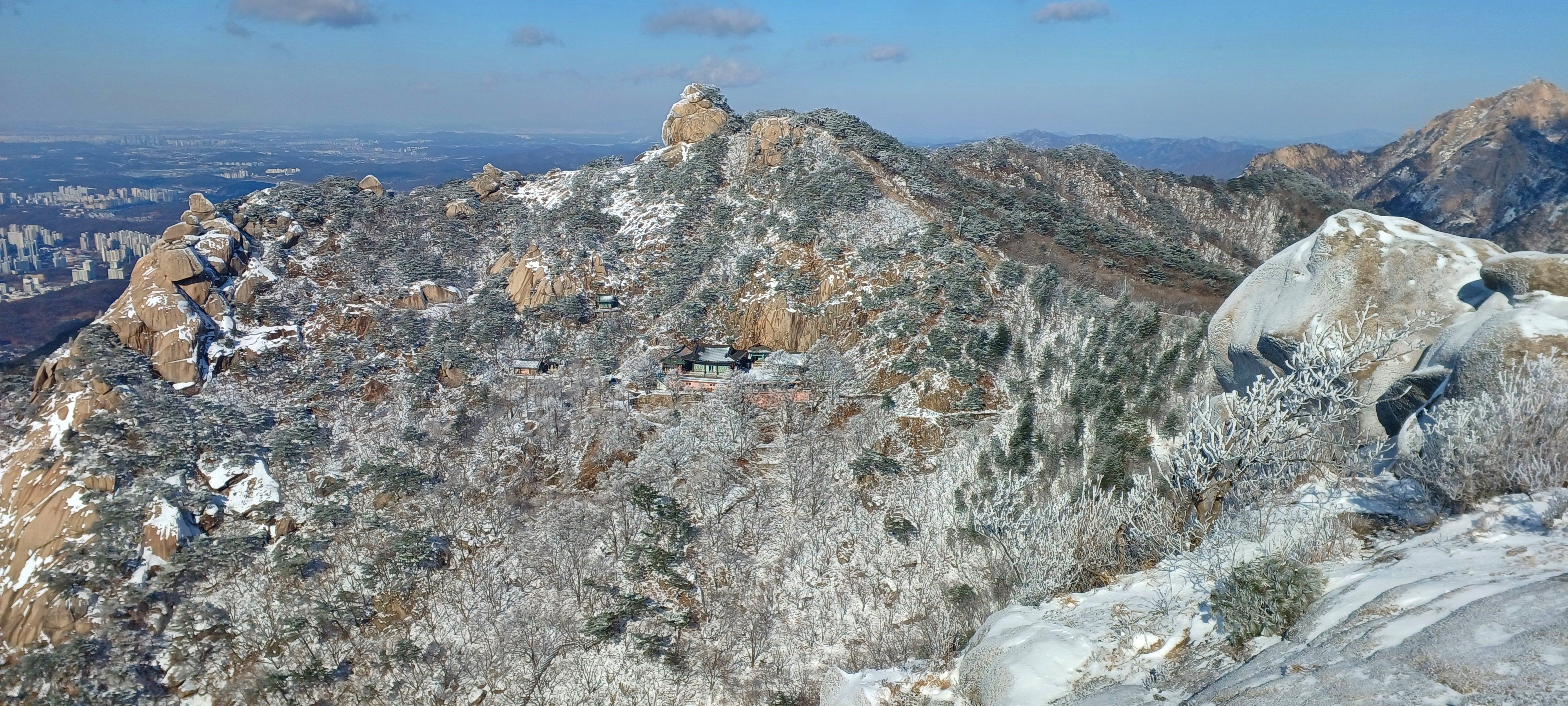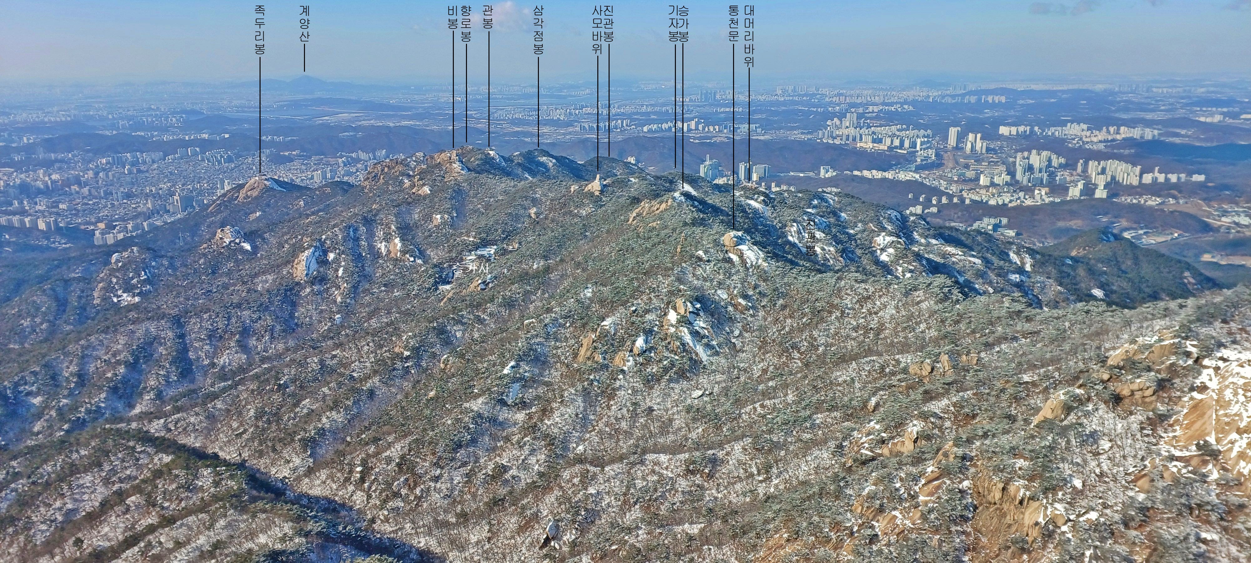 연화봉에 바라본 칠성봉과 문수봉 그리고 문수사와 대남문