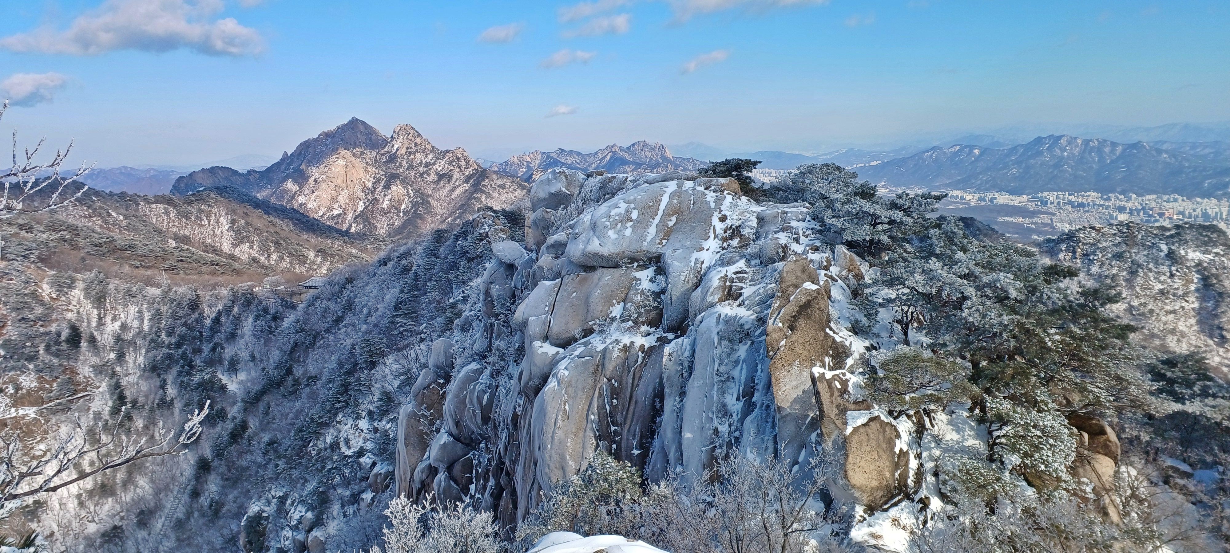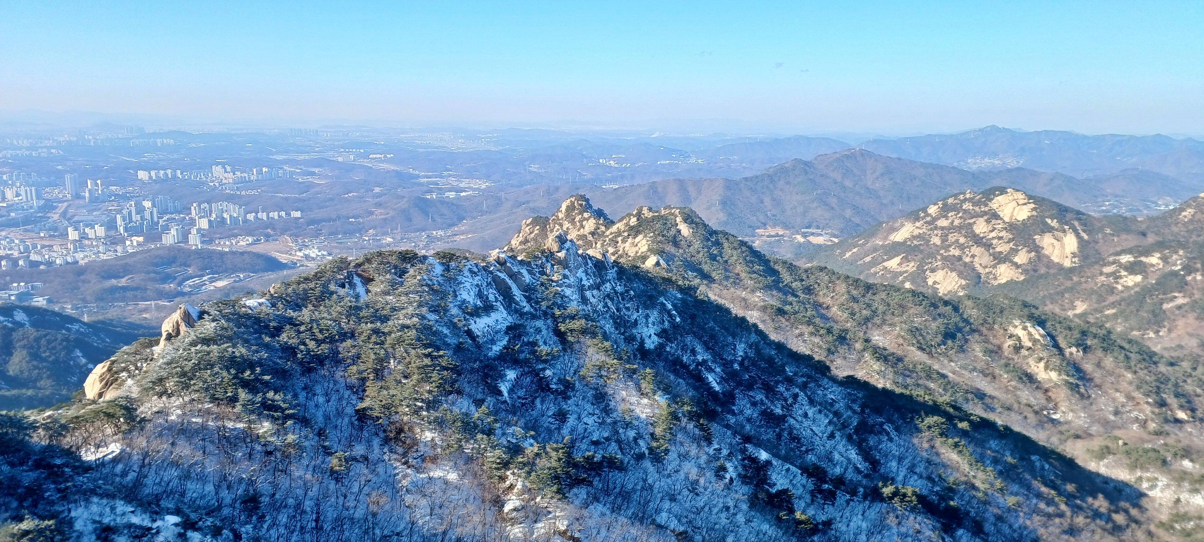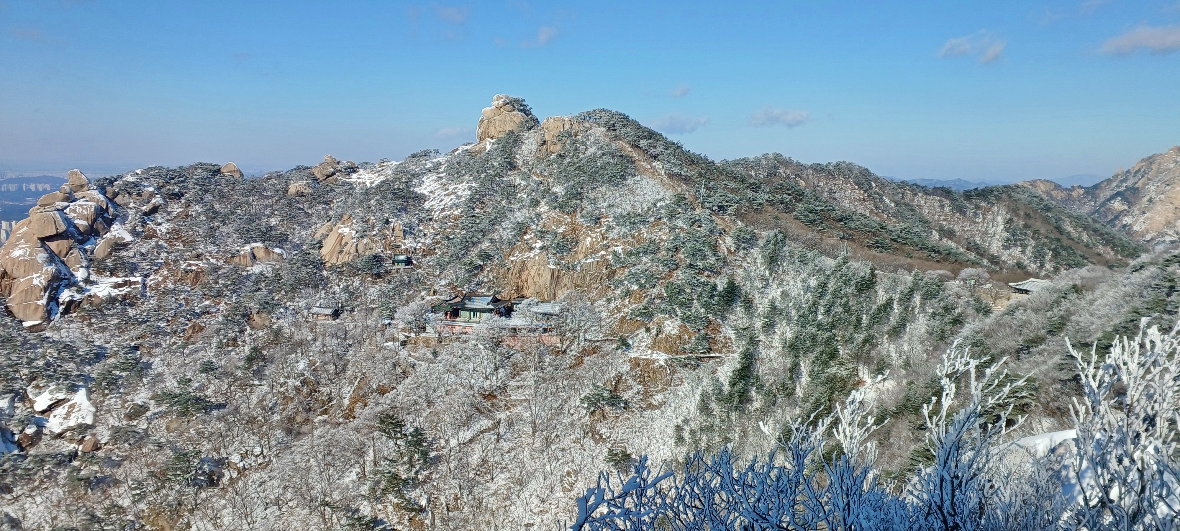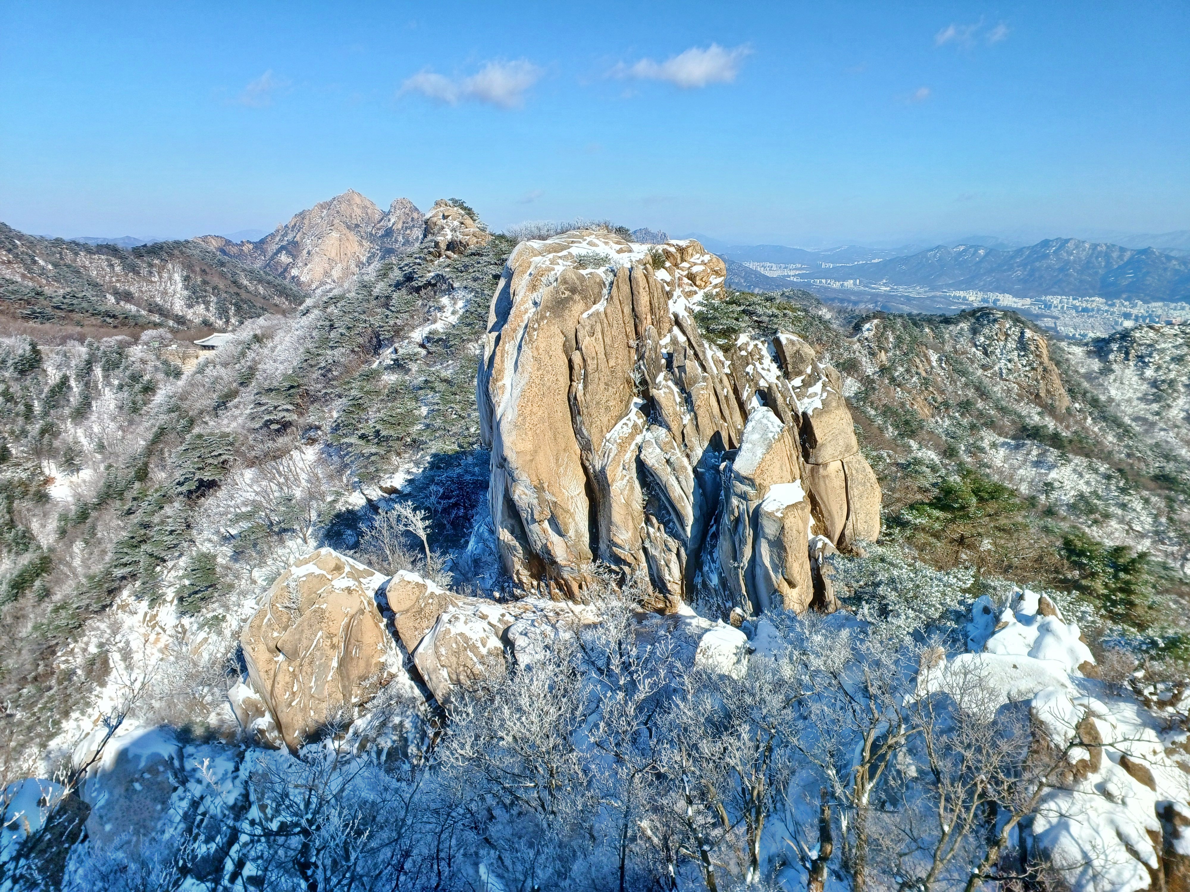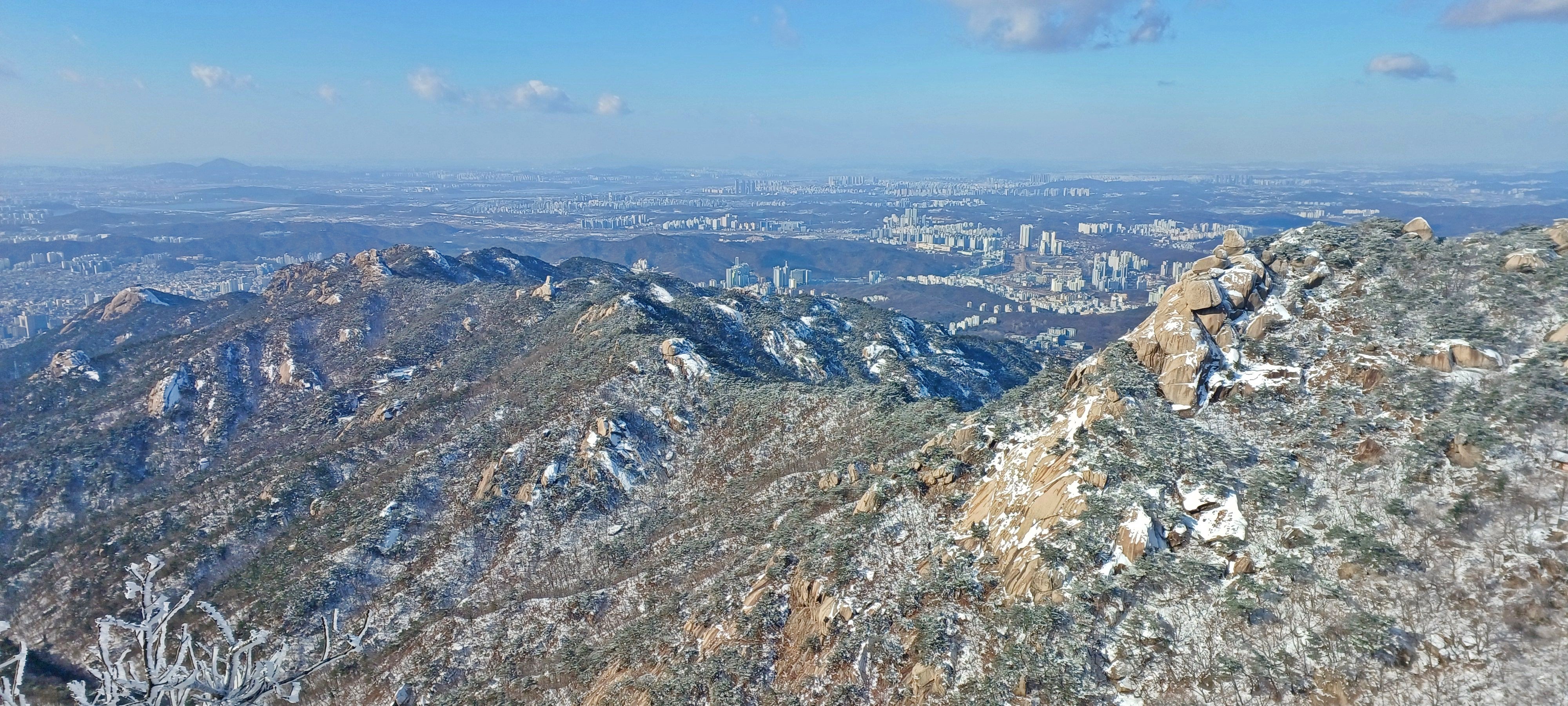 연화봉에 바라본 칠성봉과 문수봉 그리고 문수사와 대남문