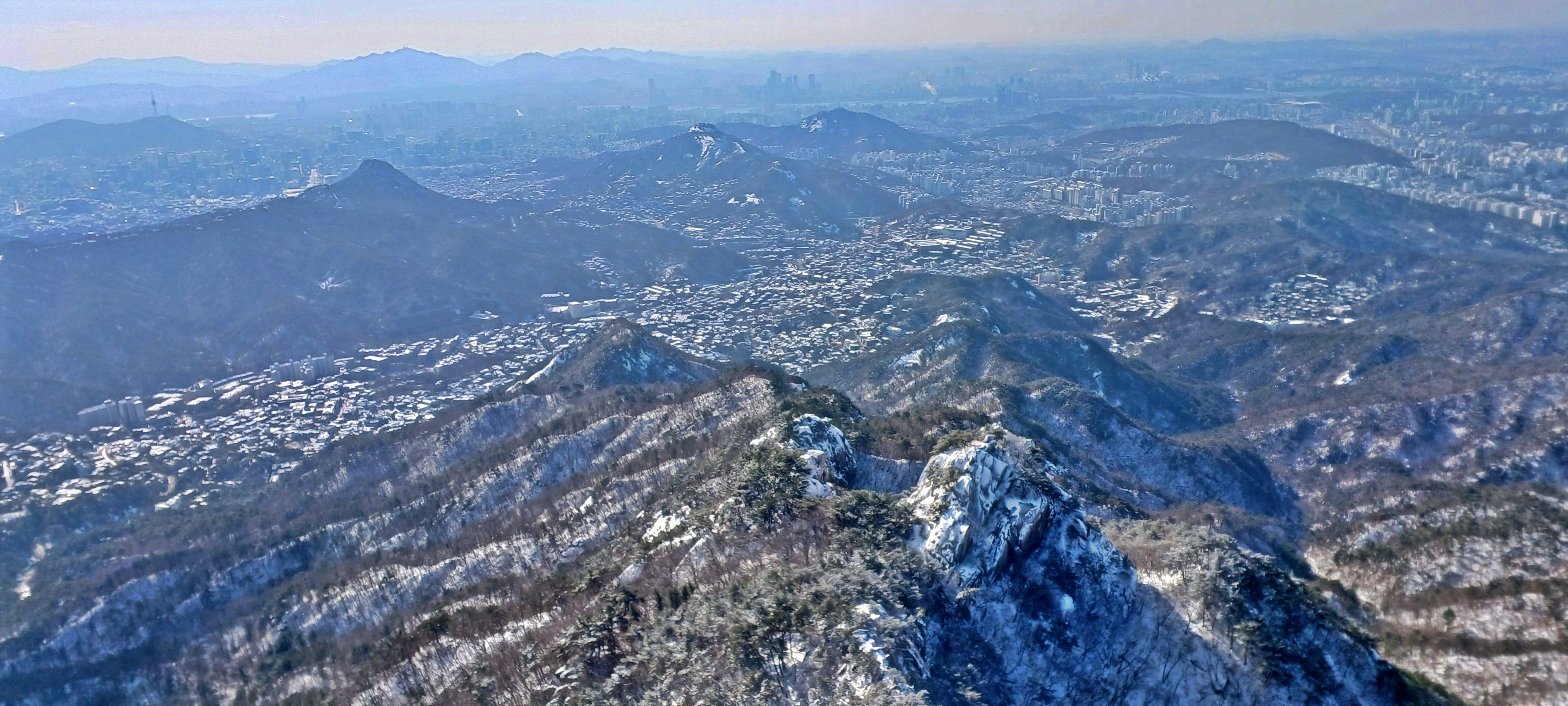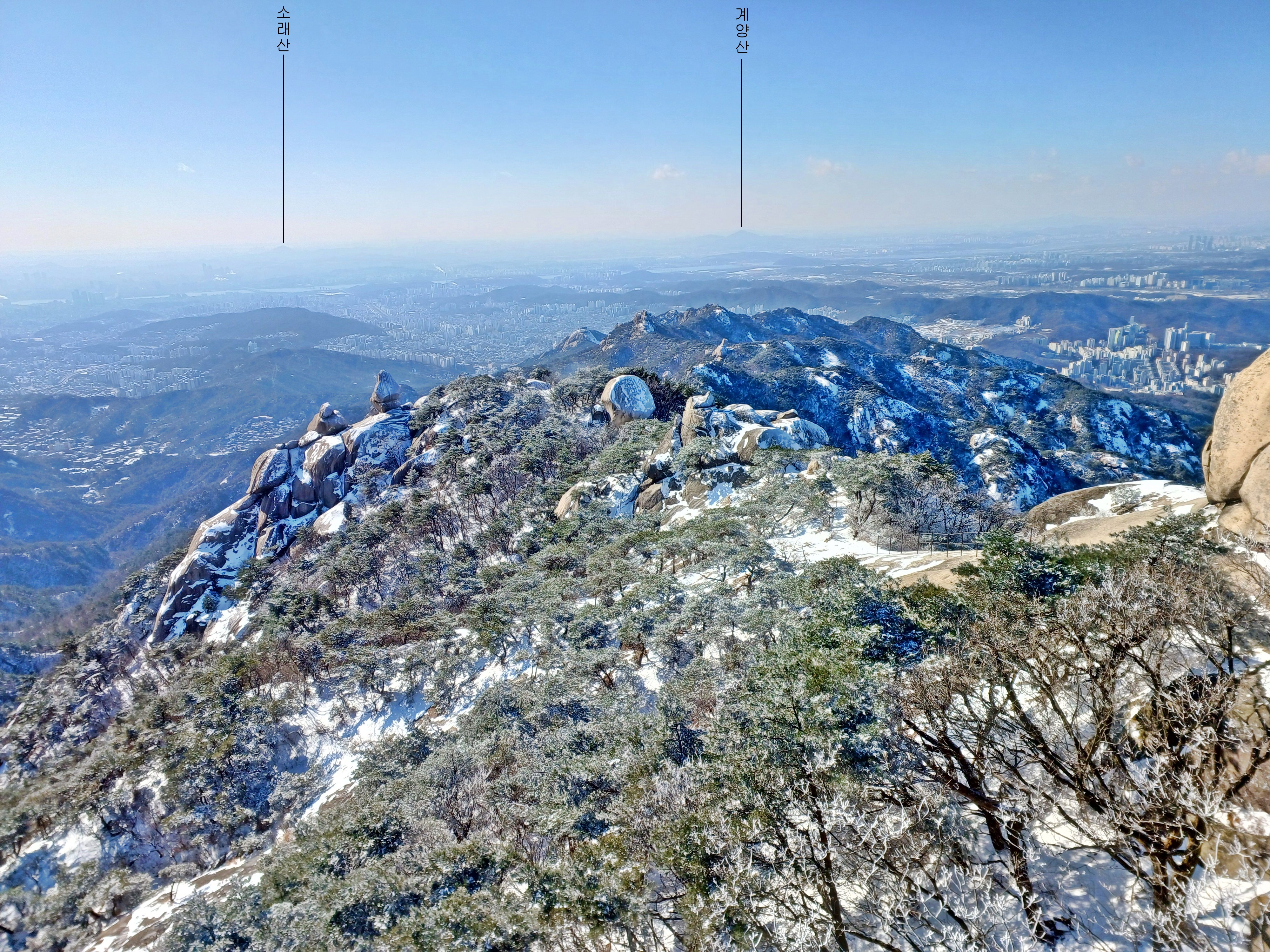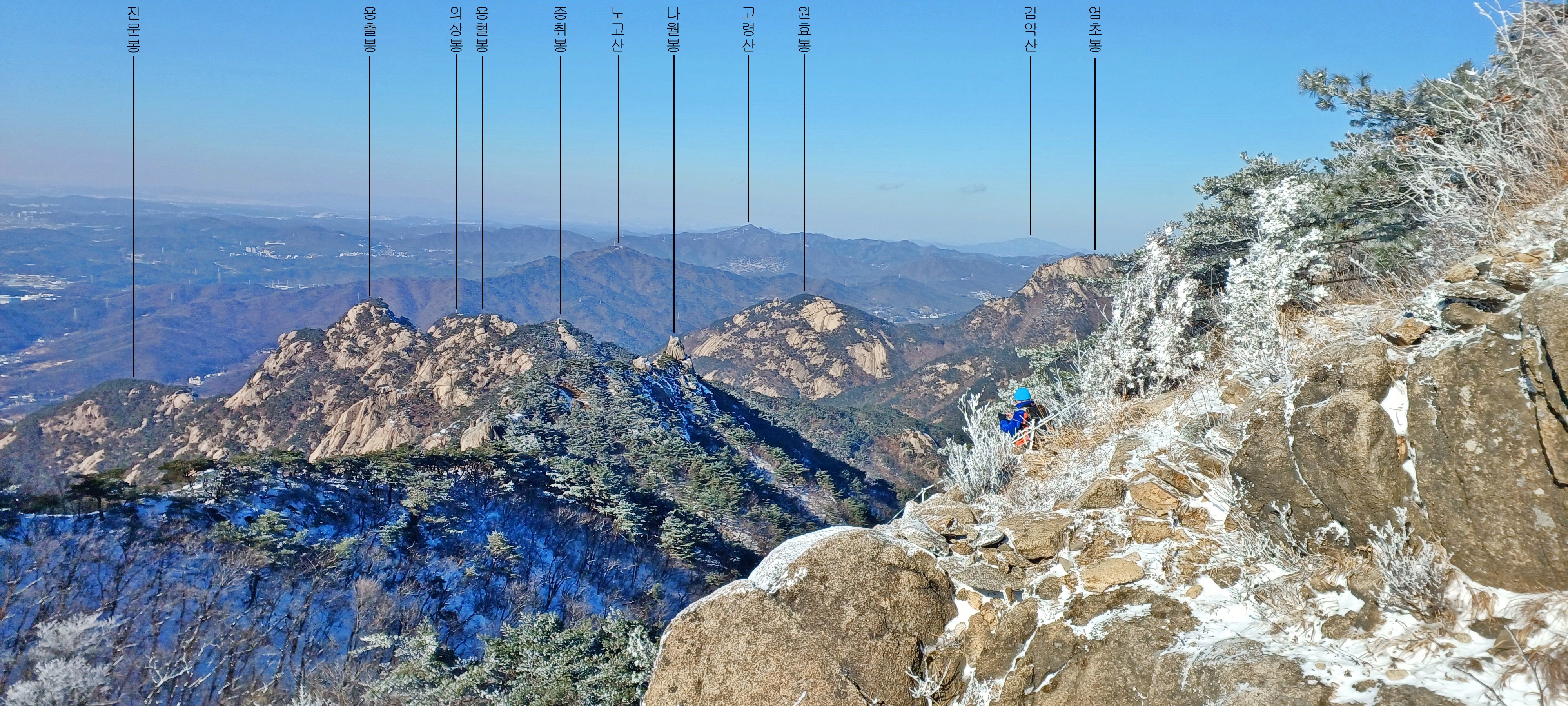 보현 2봉 뒤로 펼쳐진 삼각산 총사령부와 도봉산 그리고 수락산(우)