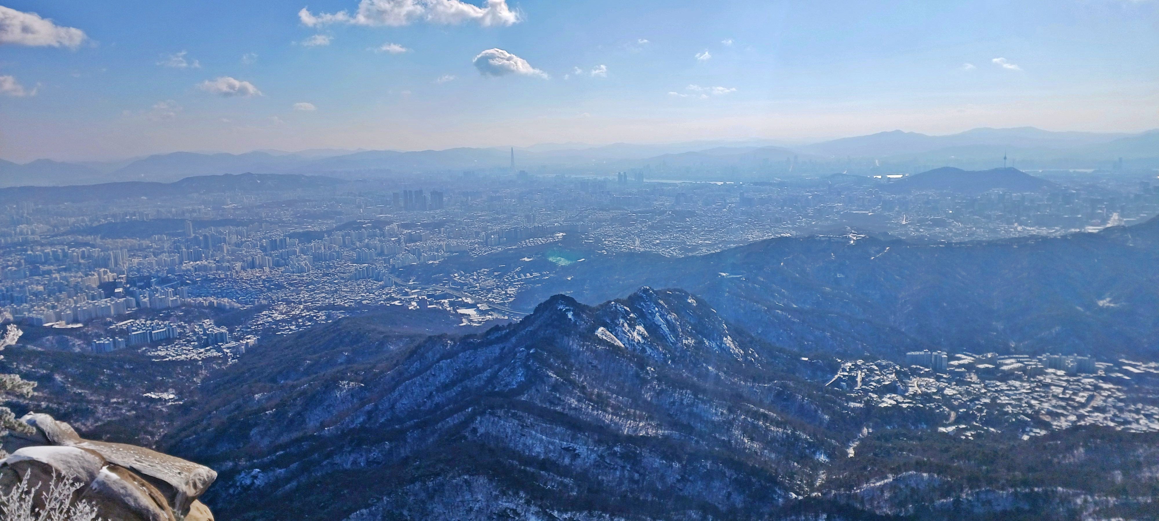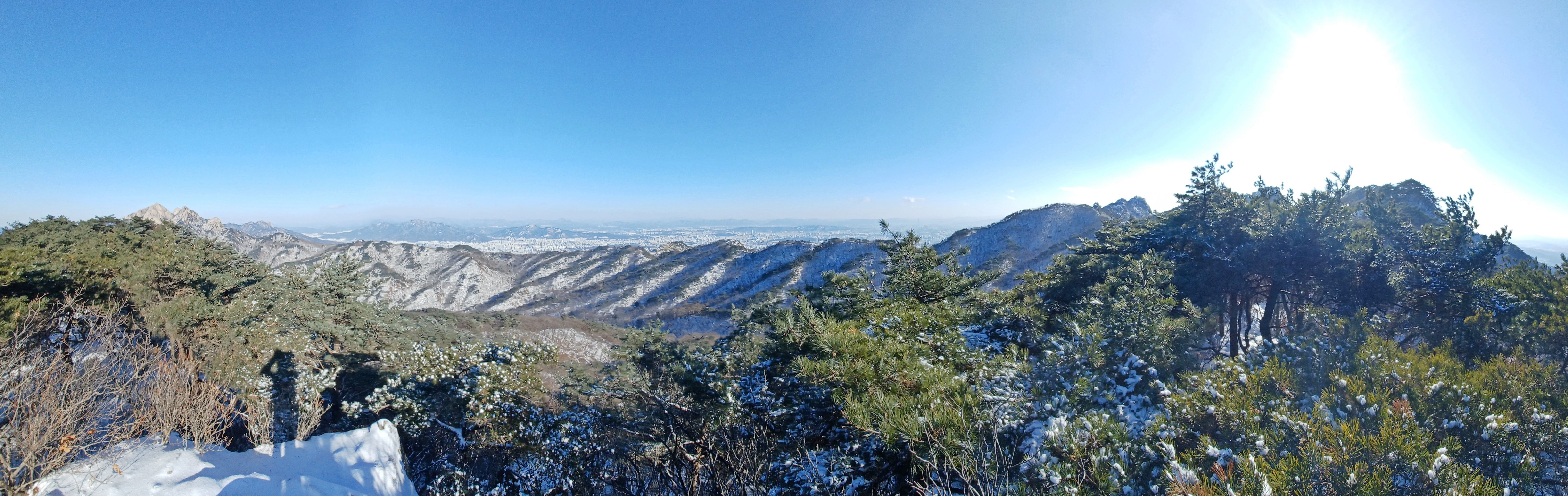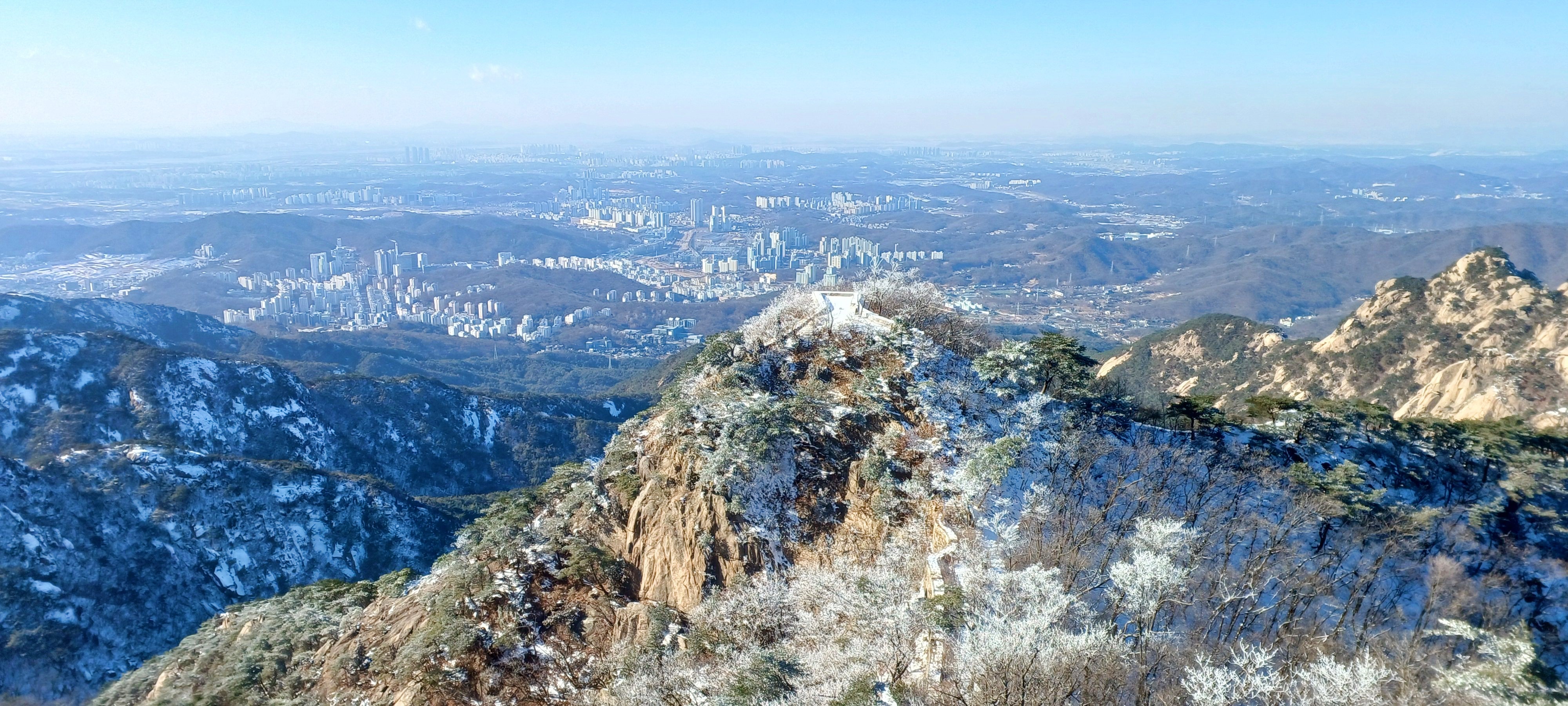 보현 2봉 뒤로 펼쳐진 삼각산 총사령부와 도봉산 그리고 수락산(우)