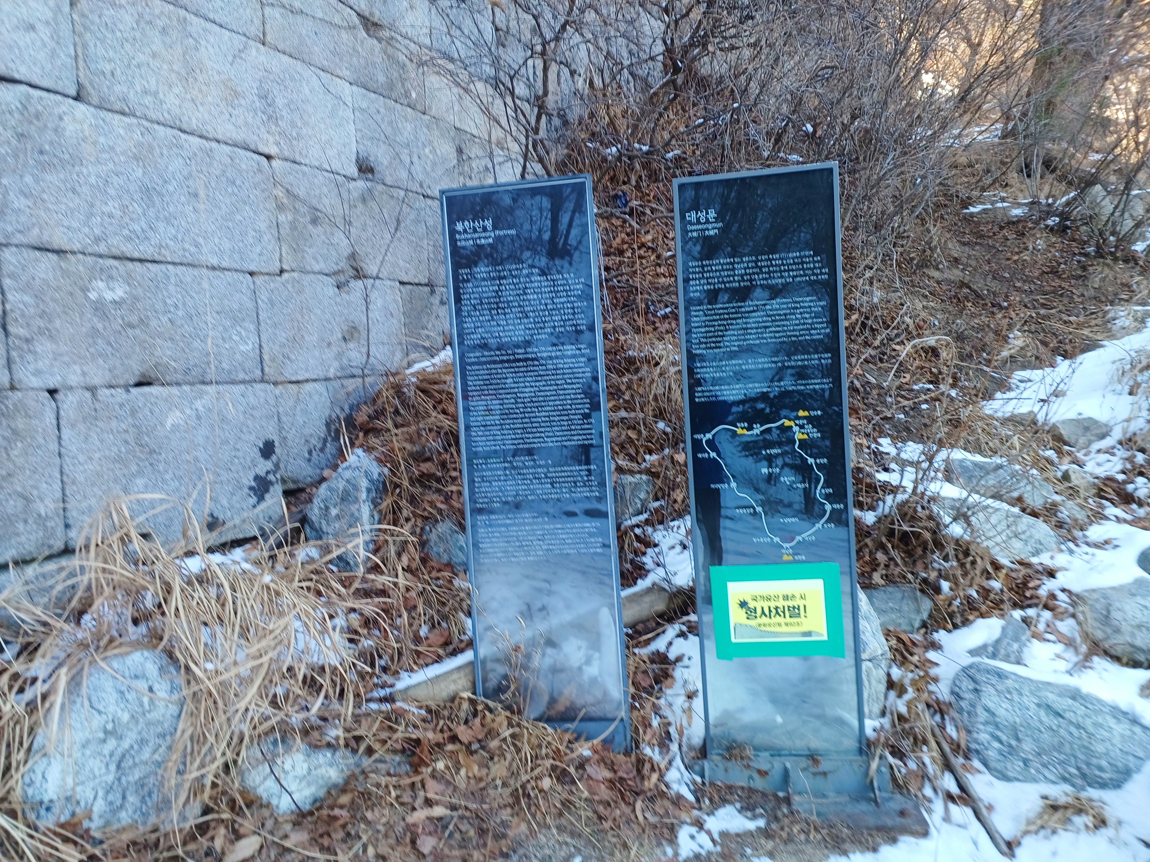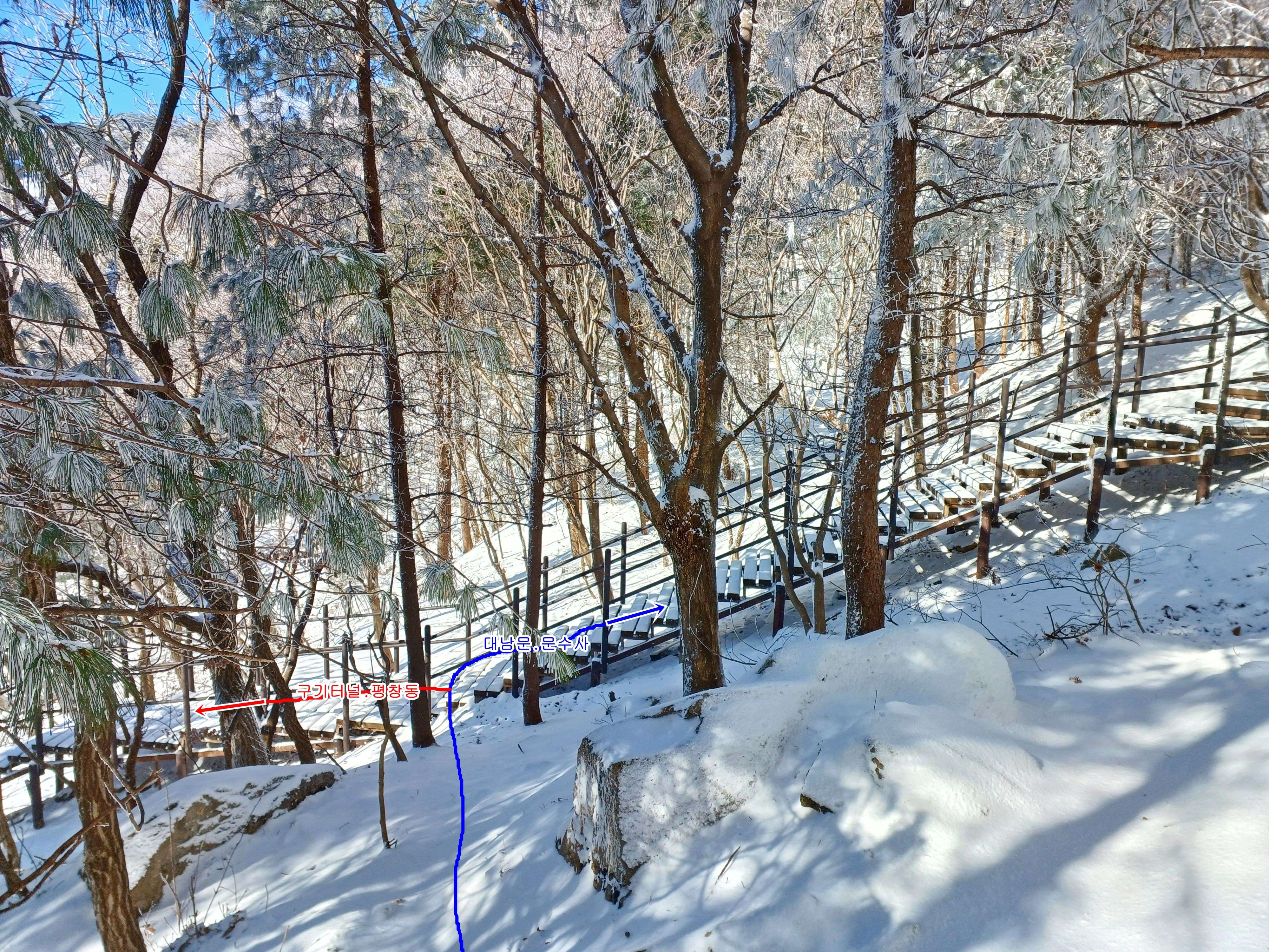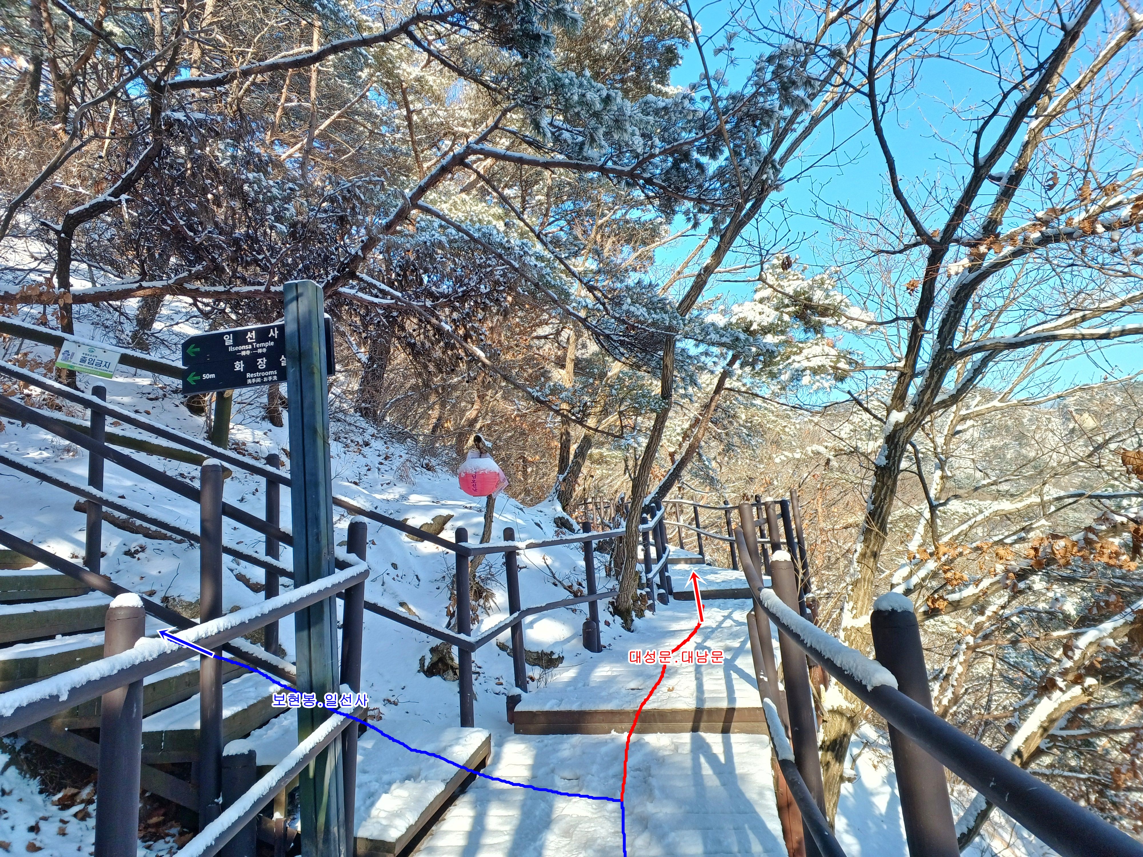 점심 먹으며 몸을 녹인 후 문수사를 나와 대남문으로 향하며........................