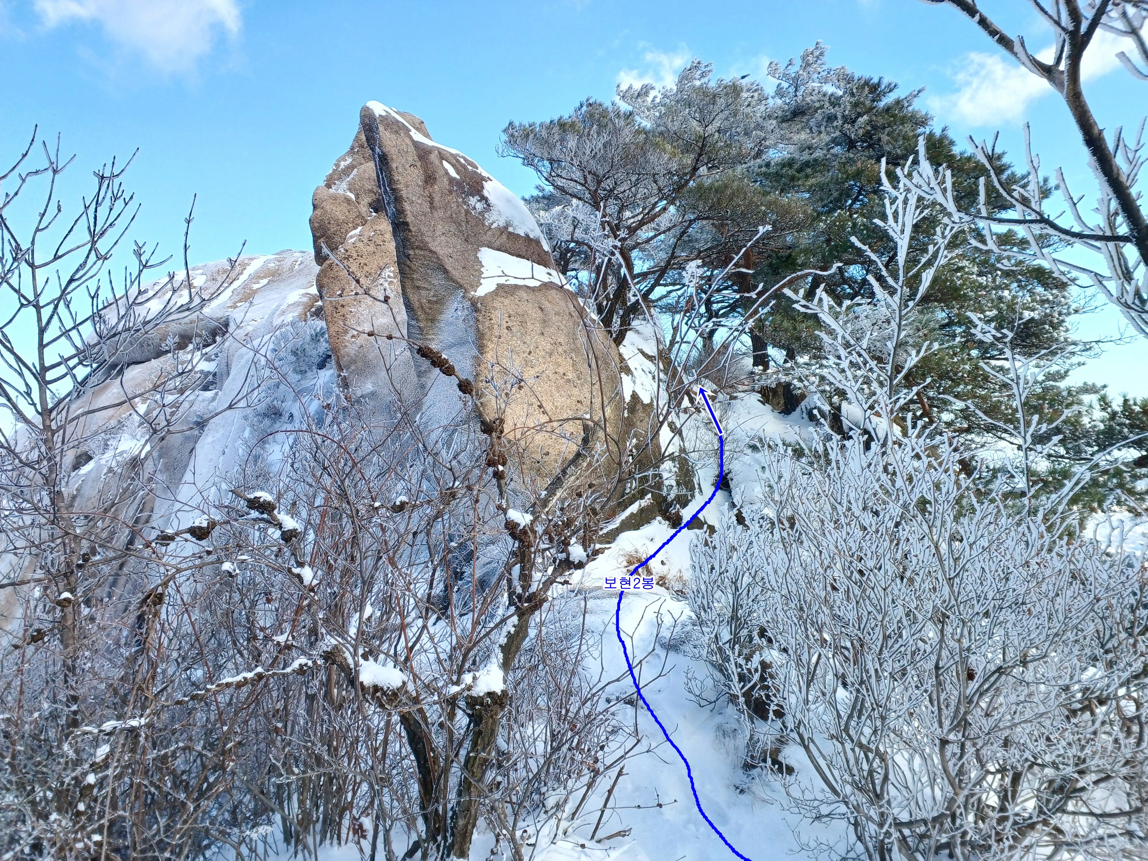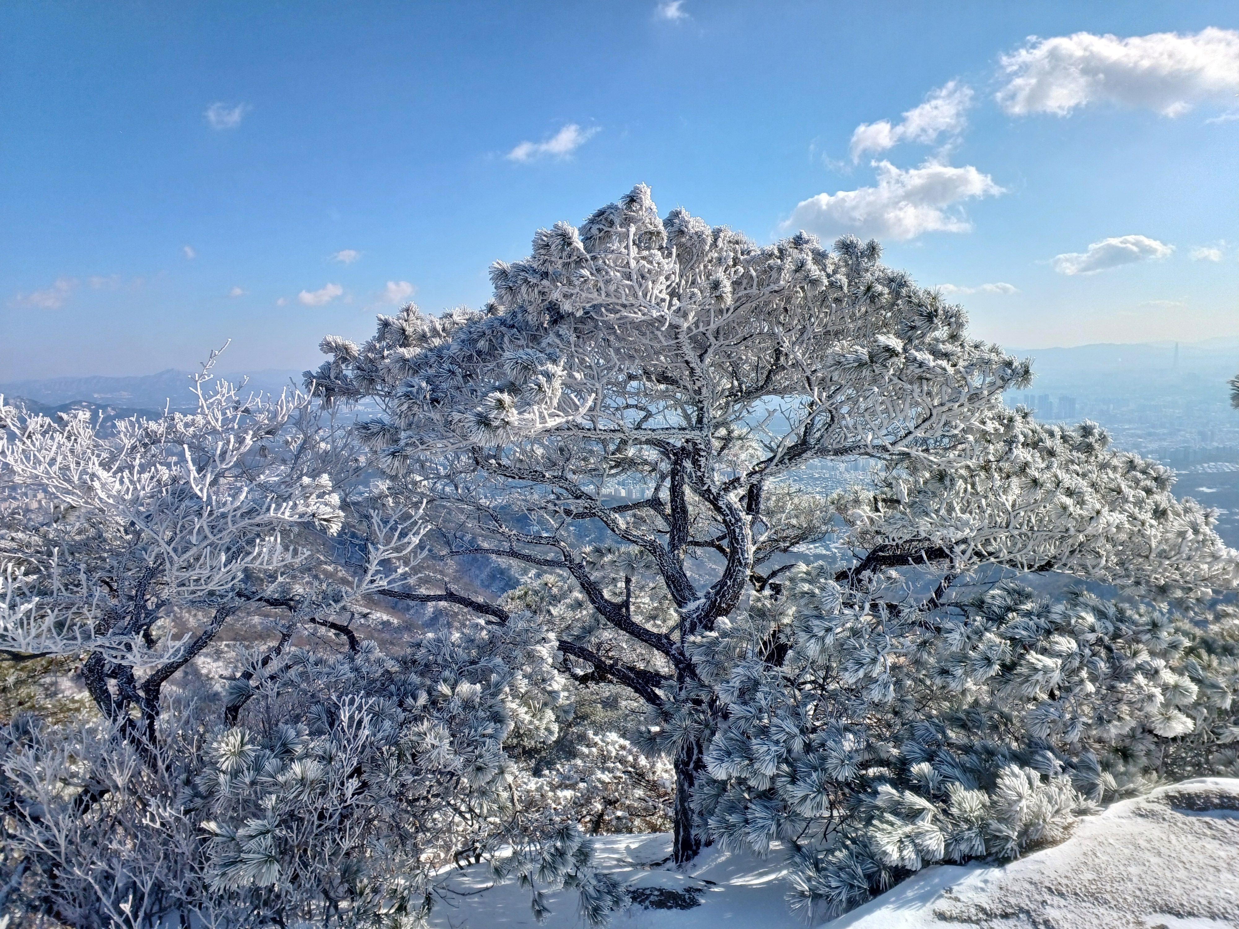 보현봉 2봉 멋진 소나무의 환상적인 눈꽃과 상고대