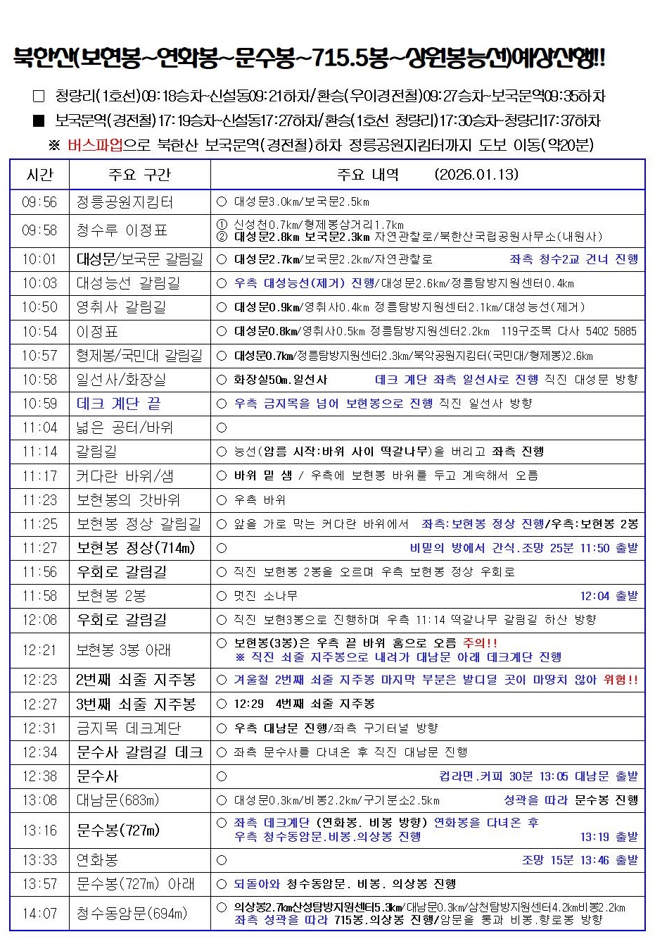 | 병오년 새해 첫날 일출 북한산 우이동~백운대탐방지원센터~하루재~백운대피소~백운대~백운대2공원지킴터 원점회귀 (1) | 2026.01.01 |