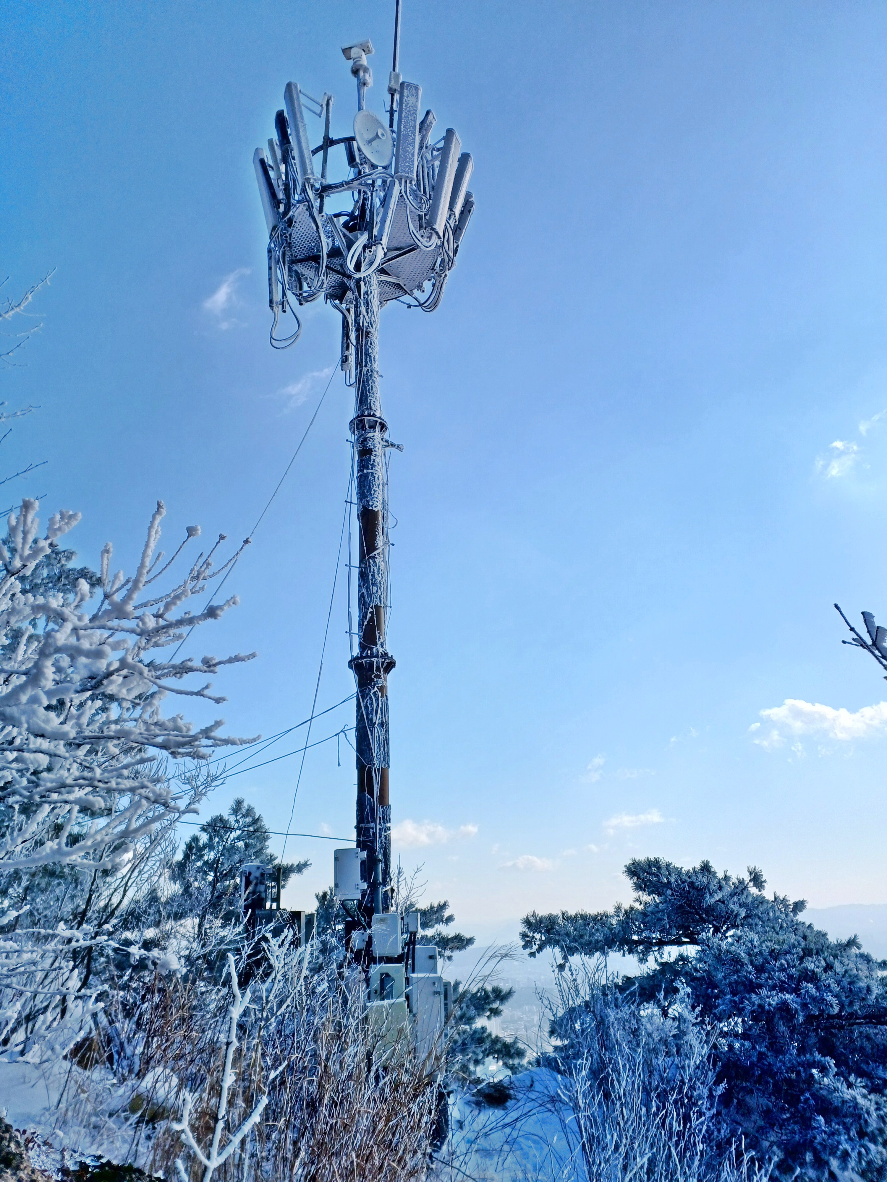 눈꽃과 상고대로 가득 덮인 소나무