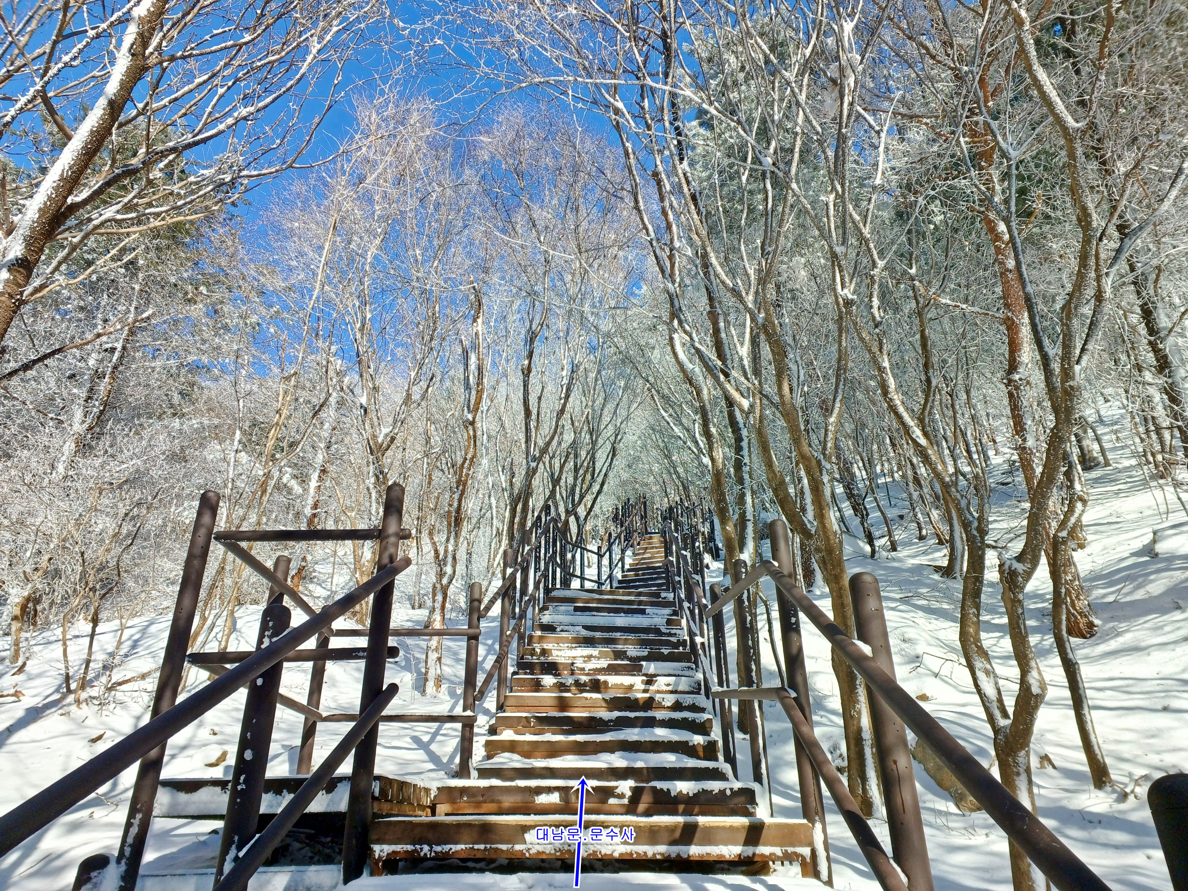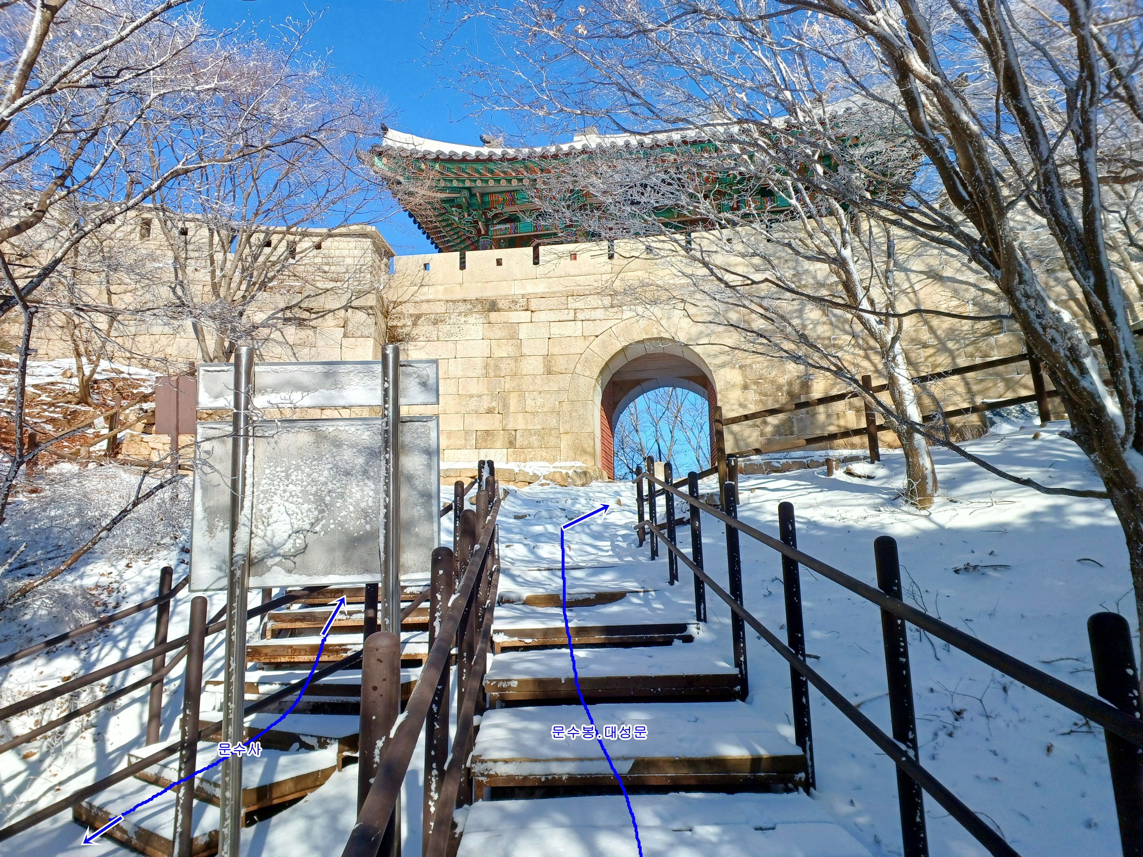 데크계단을 올라 문수사. 대남문으로 향하며.......................