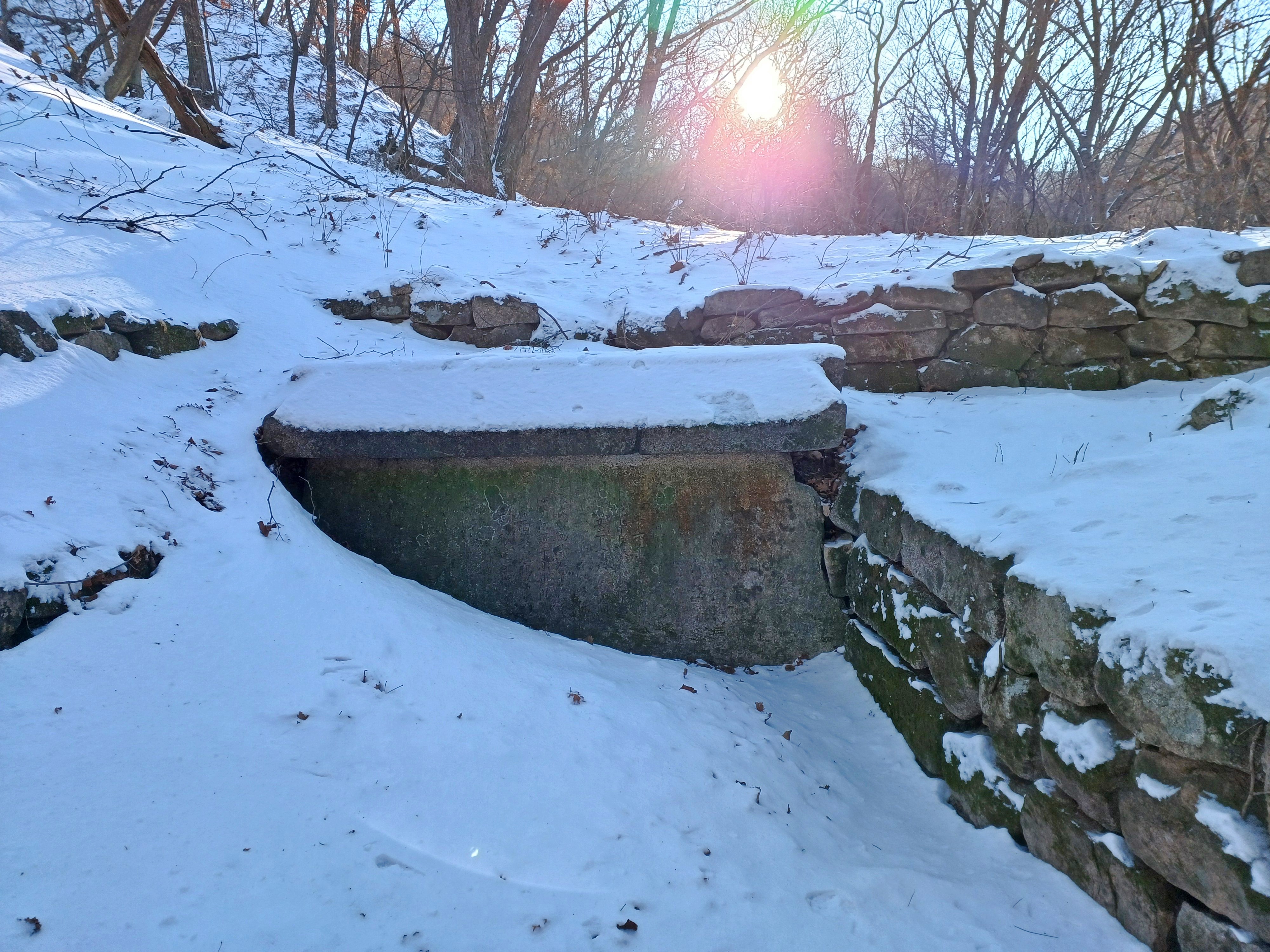 바위 아래 샘은 꽁꽁 얼어 봄을 기다리고 있습니다.