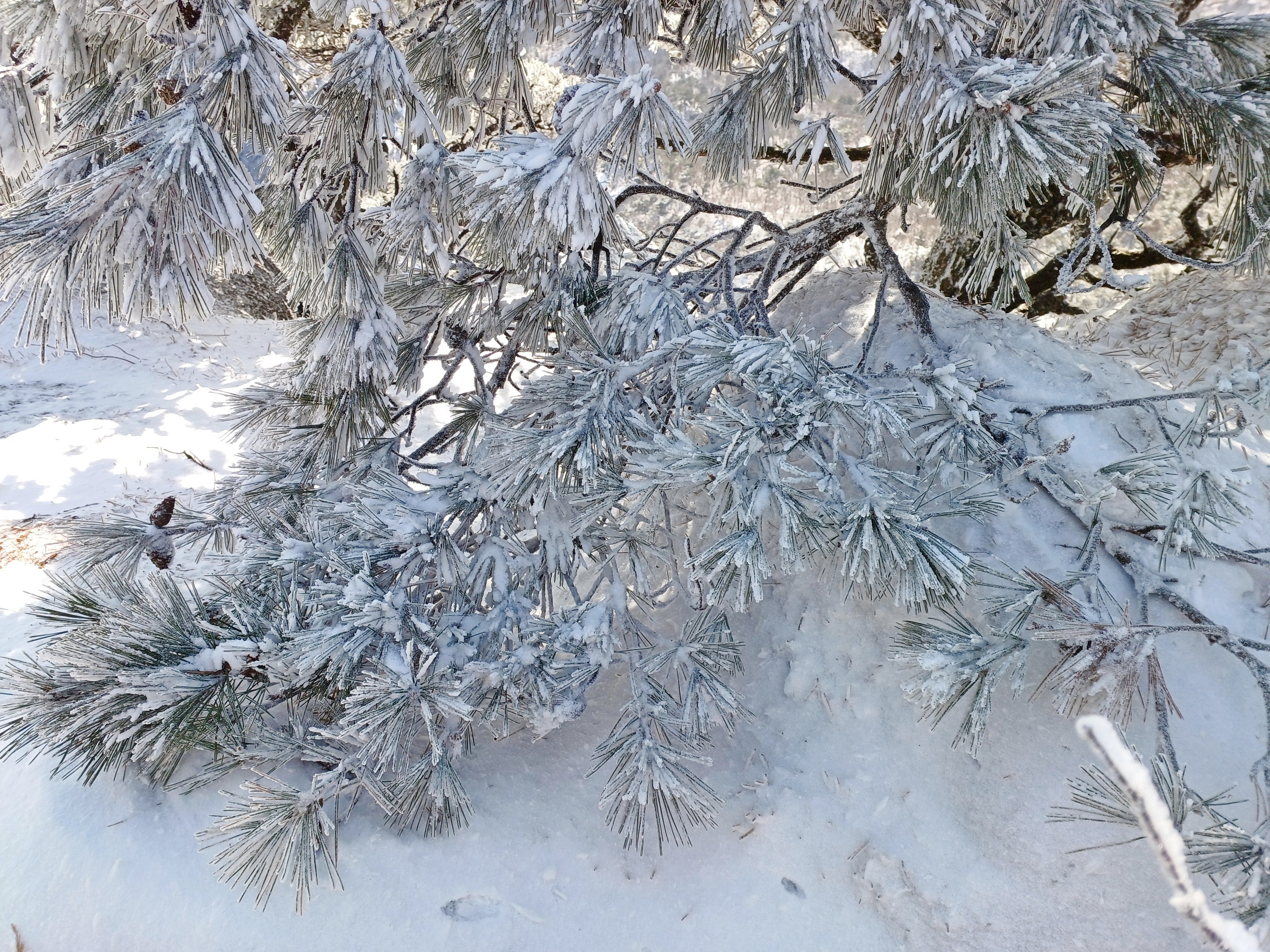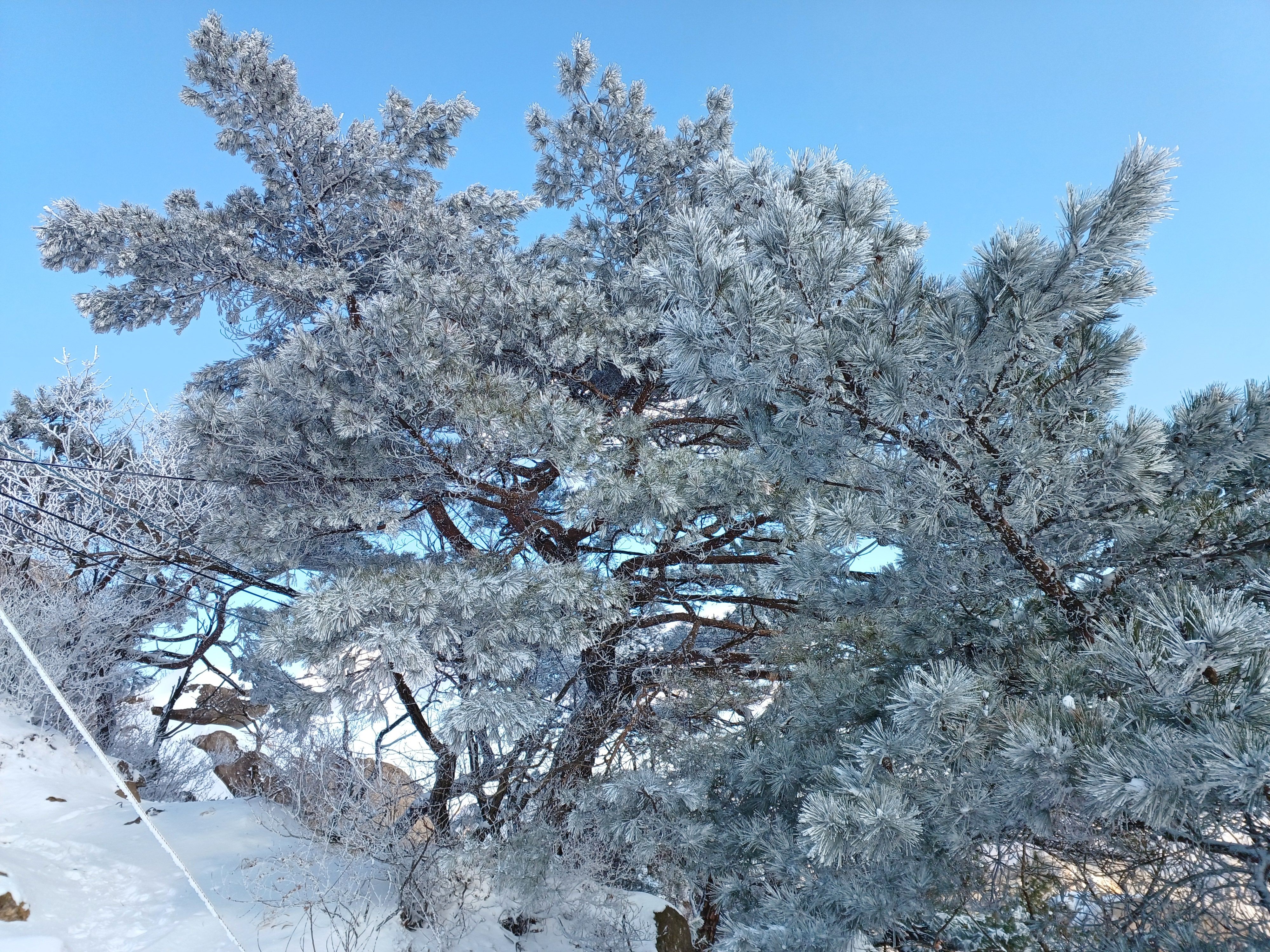 눈꽃과 상고대로 가득한 소나무