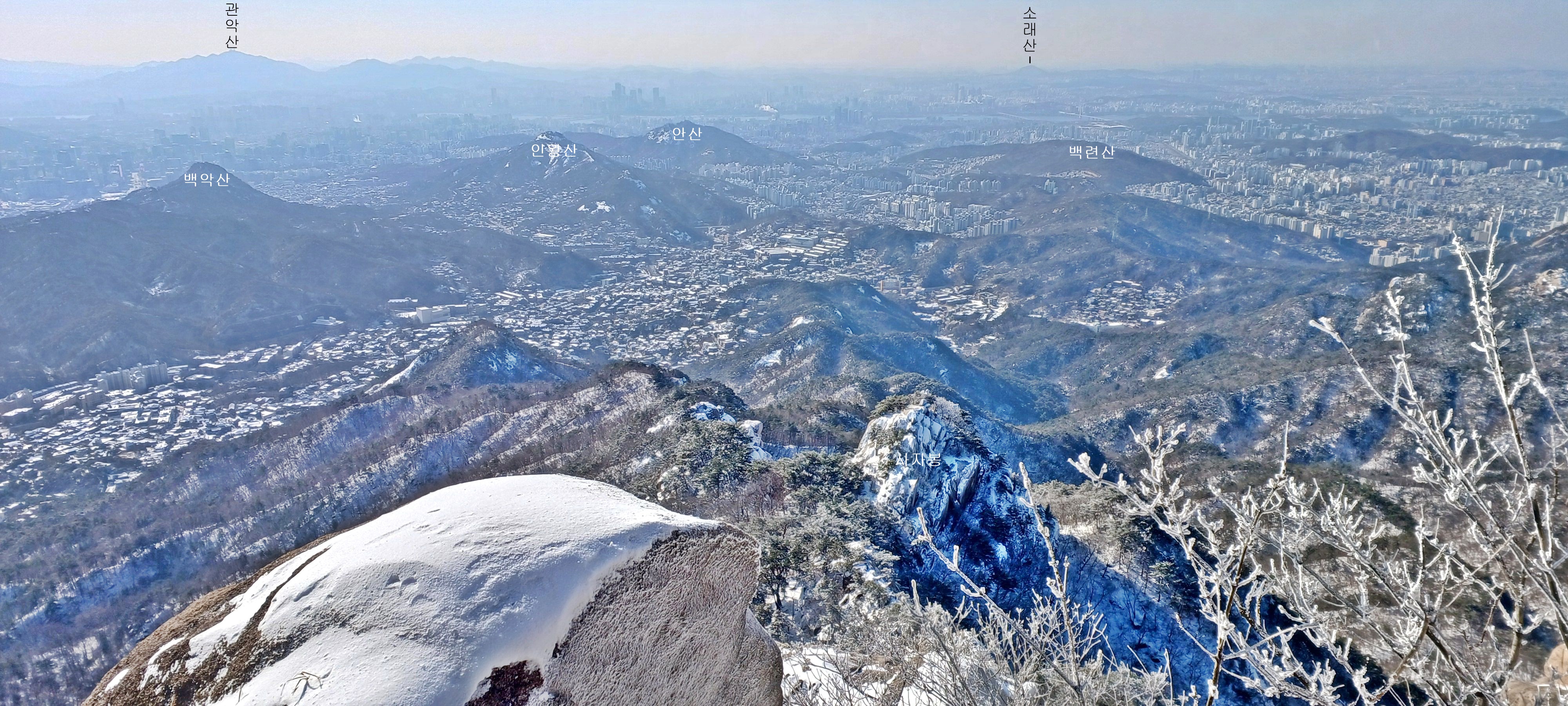 사자봉능선과 백악산. 인왕산. 안산. 백련산 조망