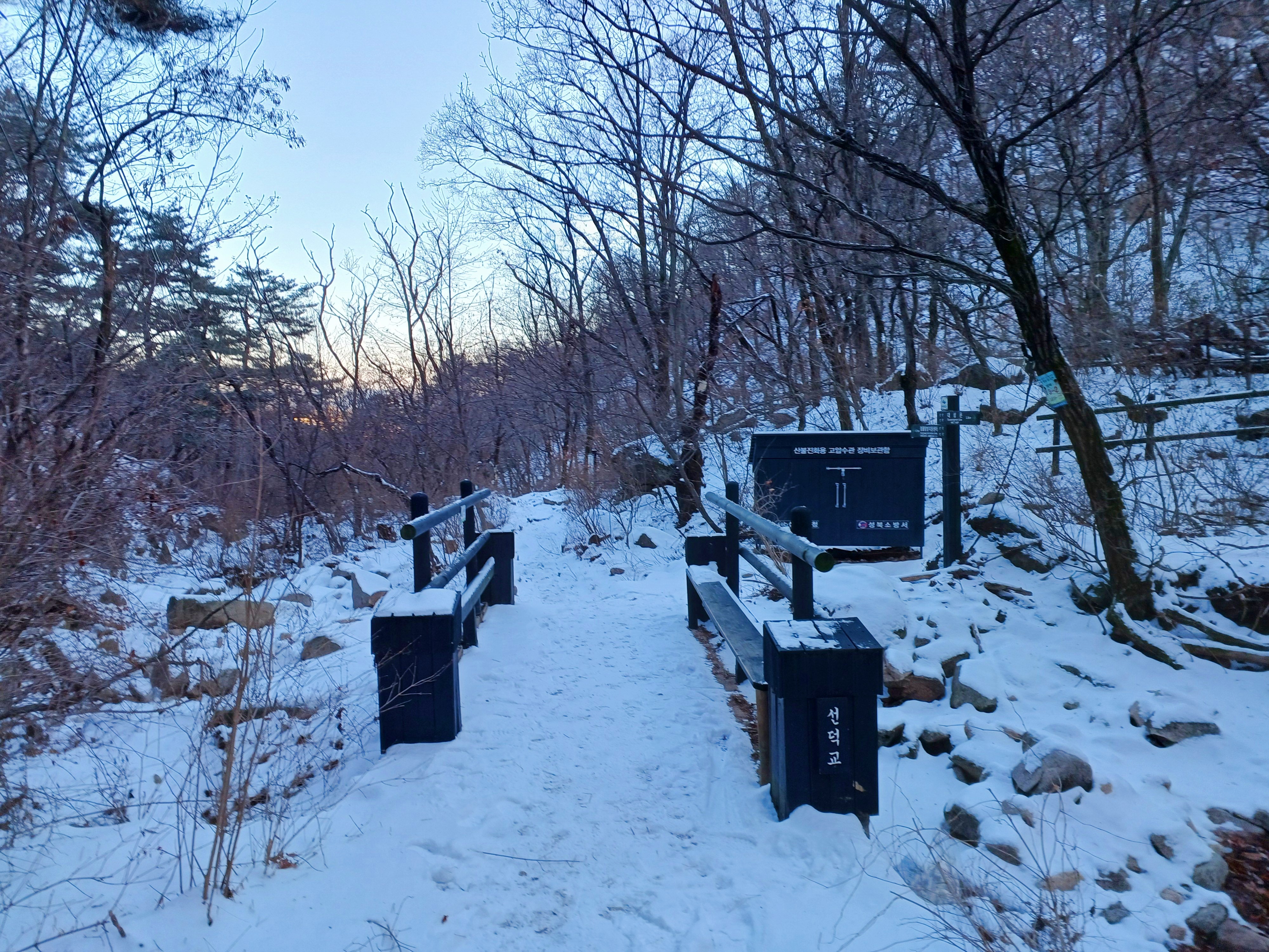 눈길 속 선덕교를 지나며....................