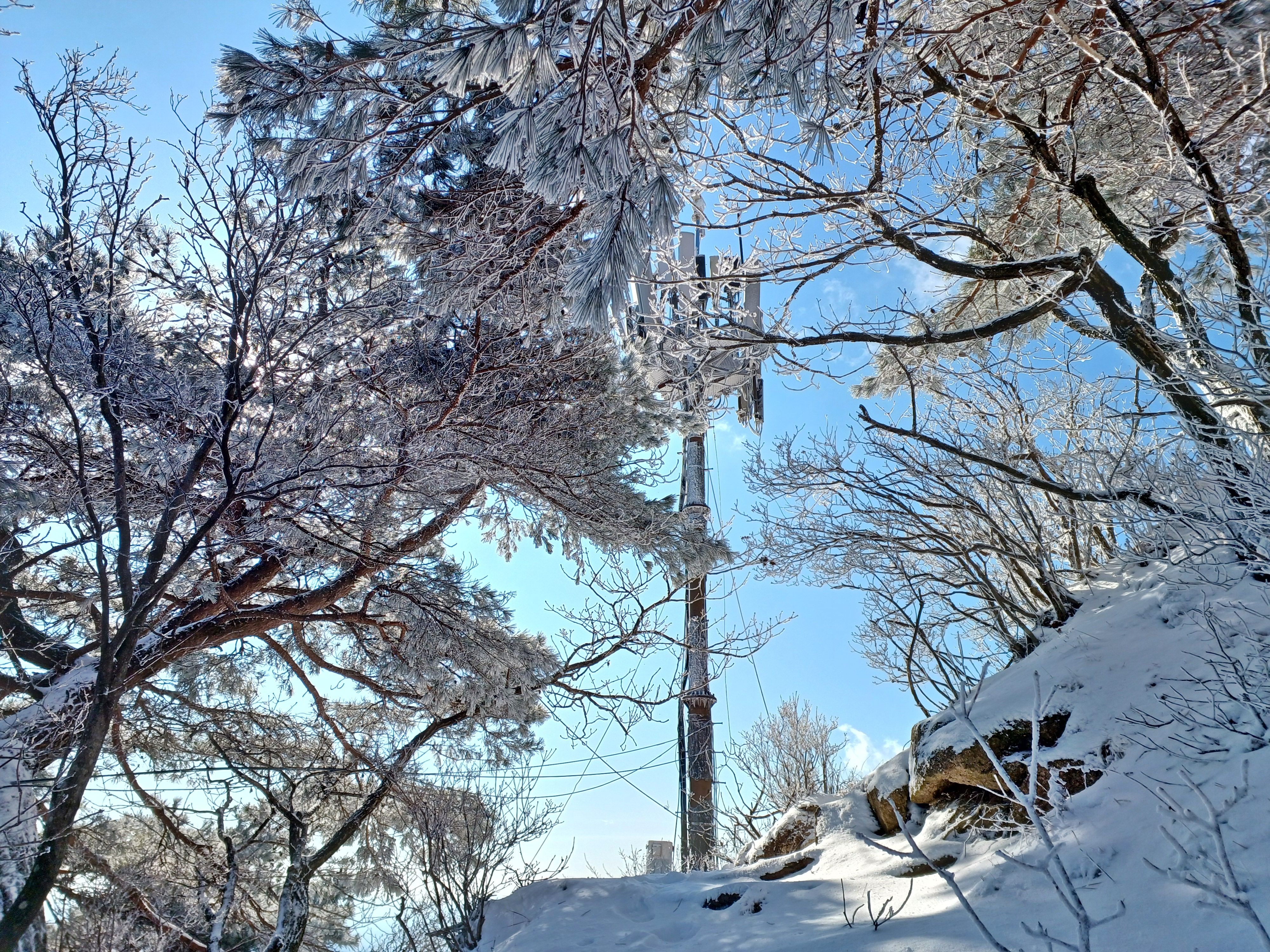 오랜만에 느껴보는 눈꽃으로 가득한 소나무