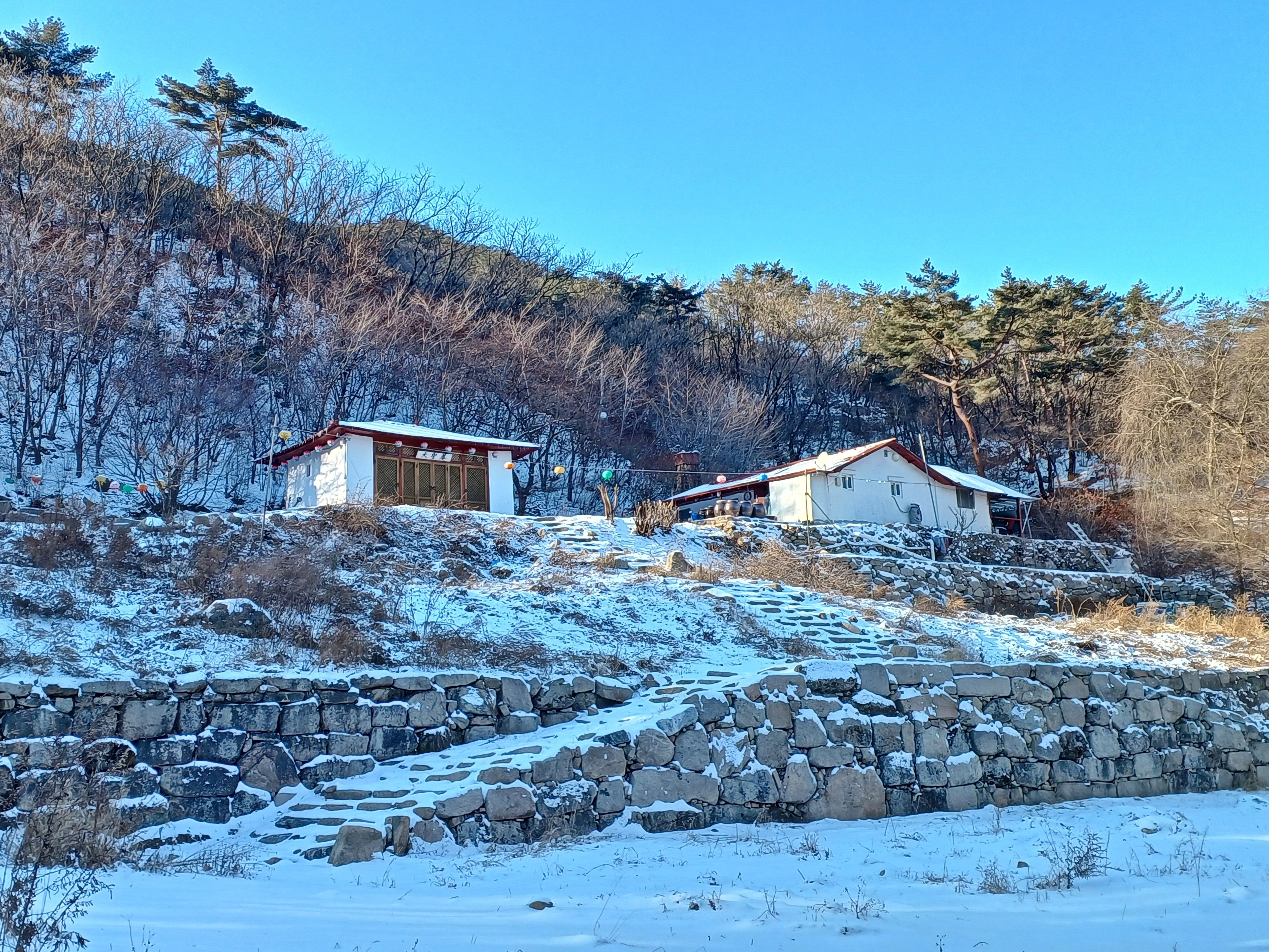 찬바람을 피해 문수사에 신세를 지며 이곳에서 컵라면과 다방커피 한잔 하며 쉬어갑니다.