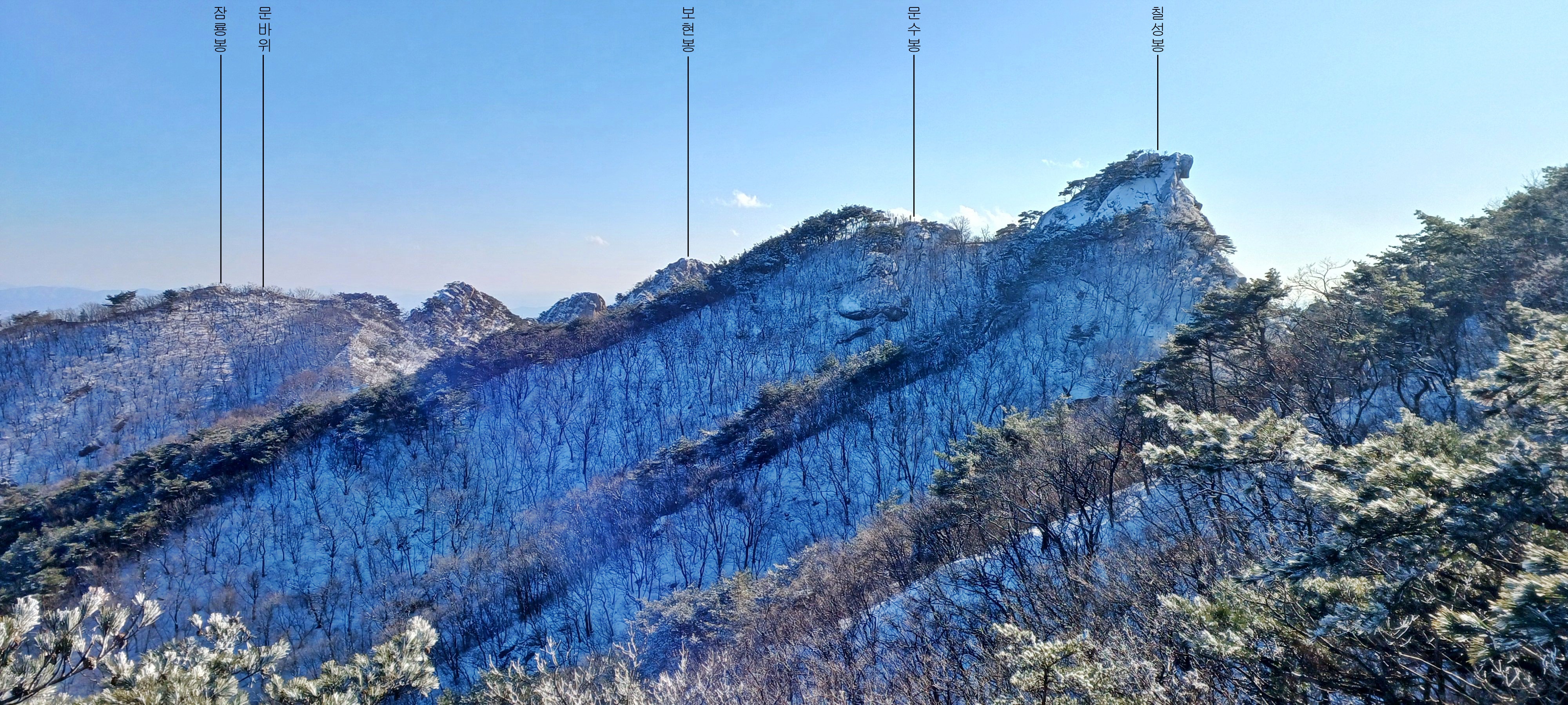 잠룡봉 문바위와 보현봉 그리고 대남문 이어지는 문수봉과 칠성봉